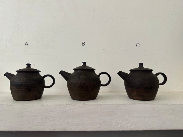 香川県で制作されている上野剛児さんは全ての作品を穴窯で焼成しています。 薪で長時間焼くことで硬くしっかりと焼き締まり丈夫なのもおすすめポイントです ひとつひとつが一点もの 焼き上がりの肌の色も異なっています 小ぶりな急須は片手でも持つことができます。 茶葉を出し入れする口の径が広いので、中が洗いやすいのも毎日使う急須ですからこんなことも嬉しいです。 焼き〆は使うほどに肌が滑らかにしっとりとした表情に変化することも使う楽しみになります A: ボディの径9cm 持ち手までの長さ13cm 口までの長さ11,5cm 蓋のつまみまでの高さ7,5cm 持ち手までの高さ8,5cm 容量 適量で170cc 重さ217g B: ボディの径8cm 持ち手までの長さ12cm 口までの長さ径10,5cm 蓋のつまみまでの高さ9,5cm 持ち手までの高さ10,5cm 容量約160cc、重さ約219グラム