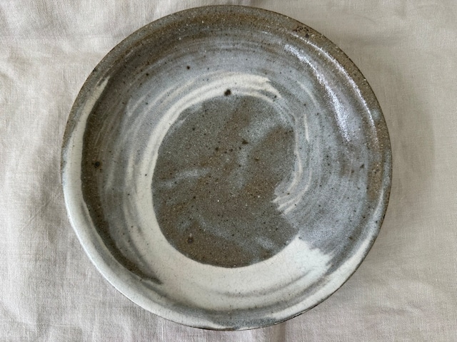 滋賀県信楽で制作している八木橋昇さんの定番で作られているお皿です リピートしてくださる方がとても多い便利なお皿、フラットな面積が大きく、縁があるのでソースなどをかけても安心です。粉引き皿と黒いお皿を一枚ずつ選んで食卓に並べても楽しめます。 前菜やおつまみを盛り合わせたり、モーニングプレートに使うのも。重なりも美しいです。 急激にお料理の色が染み込まないように処理をしてあります。洗ってすぐにご使用いただけます 釉薬の流れた表情や溜まって濃くなった部分の表情も一枚ずつ違います サイズ 径21,3センチ、内側のフラットな部分の径19,5センチ 高さ2センチ 重さ 黒 約380グラム 粉引約415グラム