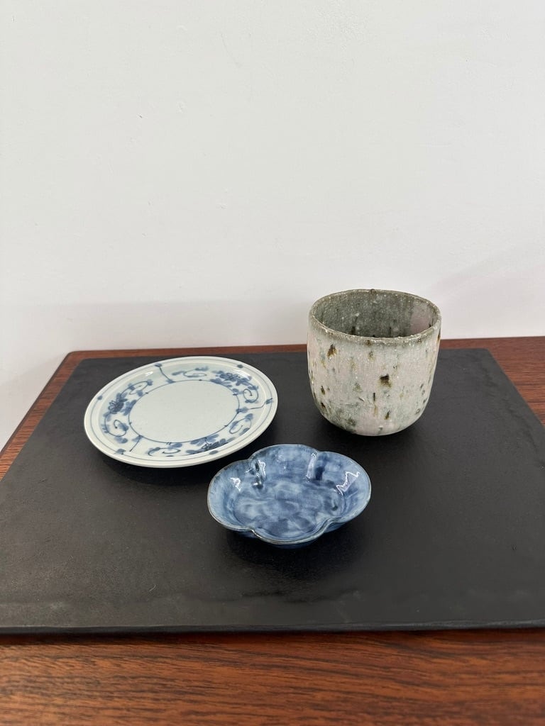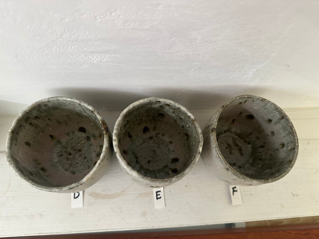 粗い粘土を使っていますので釉薬がたっぷりかけられていますが、長時間水分を入れたままにしているとじんわりと滲みてきます。テーブルに染みがつくこともありますのでご注意ください。