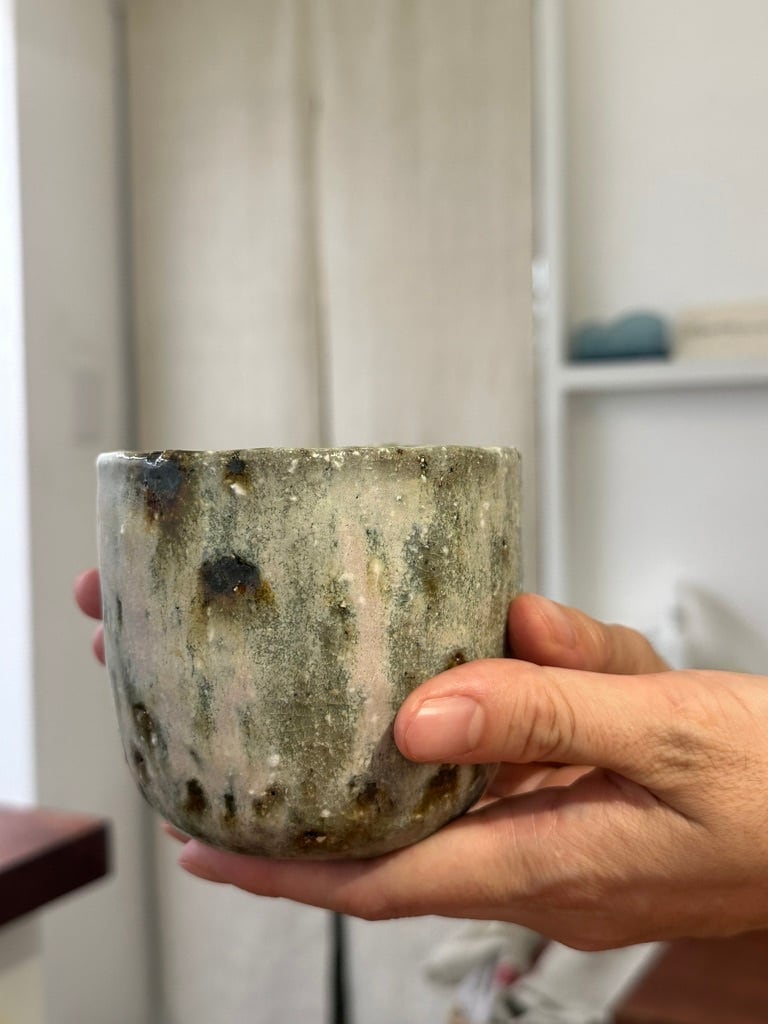 たっぷりと大きめサイズの筒碗です。焼酎、ビール、たっぷりコーヒー、ほうじ茶など これからの季節は出番が多くなりそうです