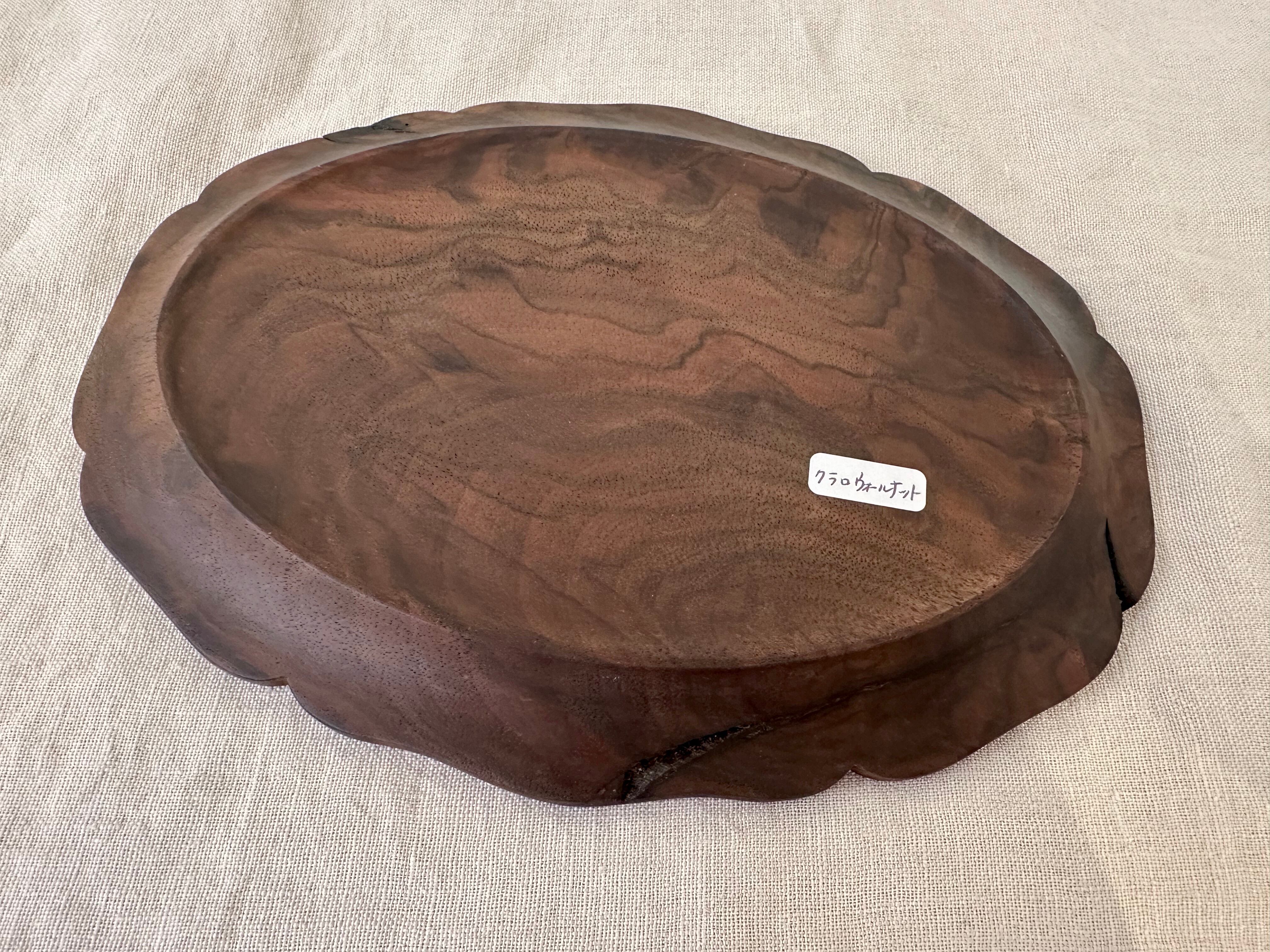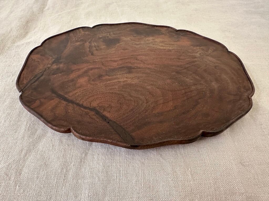 神奈川県の木工作家 studio fujinoを運営されている藤崎均(fujisaki hitoshi)さんの輪花楕円皿です。縁のデザインと自然の木目模様が作り出すバランスが美しいお皿です