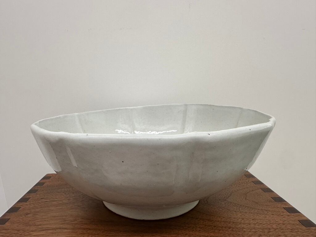 細かな粒子の陶土に白い釉薬がかかった柔らかな印象の輪花鉢です