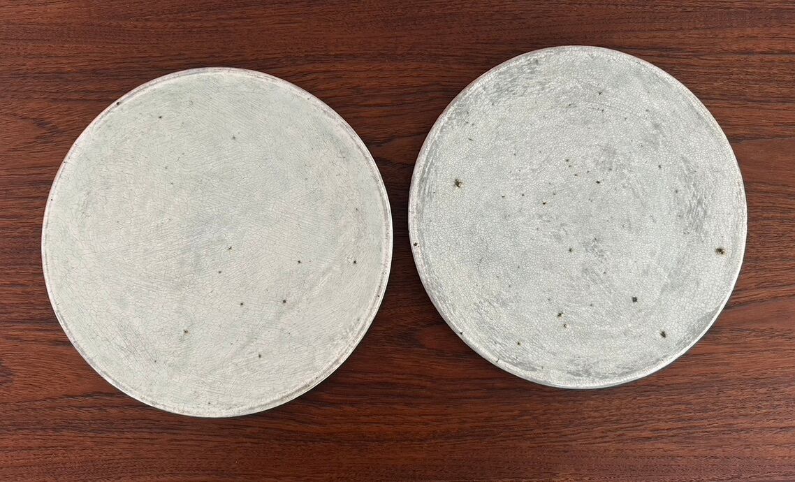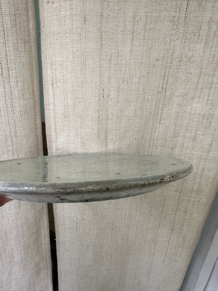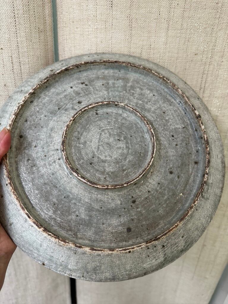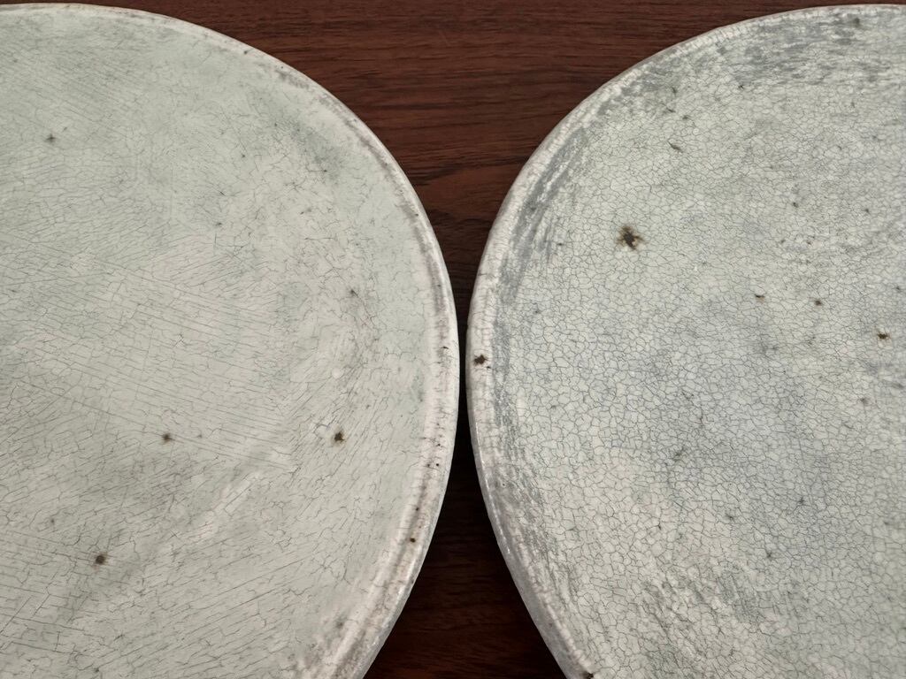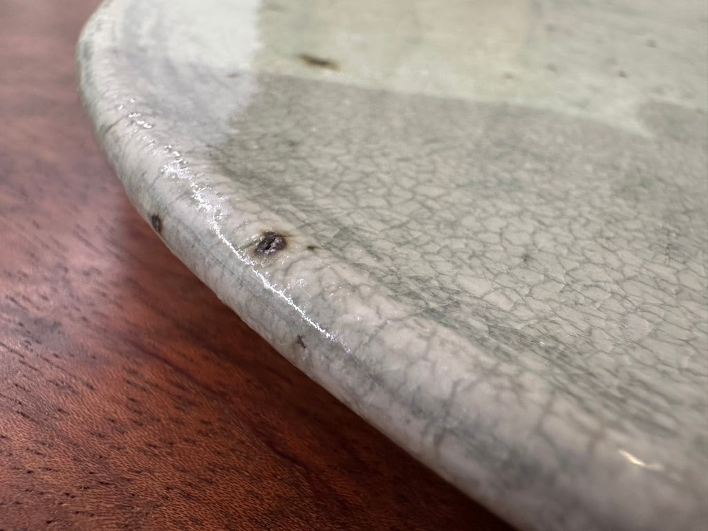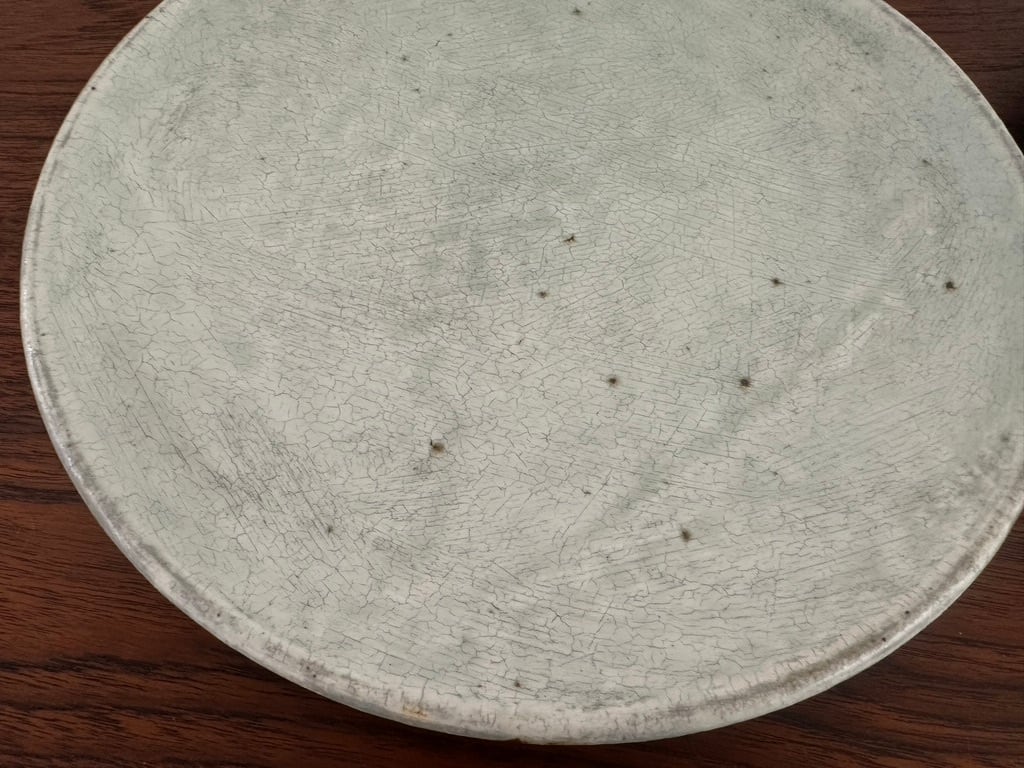 全体に刷毛目模様を施してから肺の釉薬をしっかりかけています。二枚ありますかせそれぞれ表面の景色は違っています。1枚目の写真左は刷毛目模様があまり目立ちません。