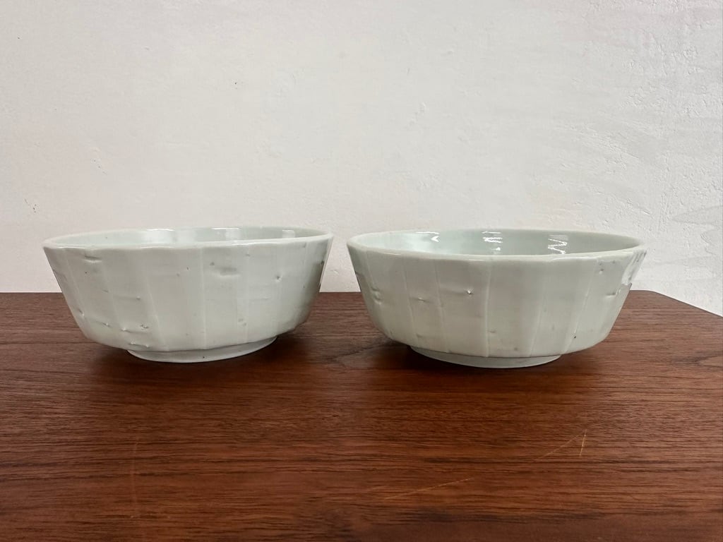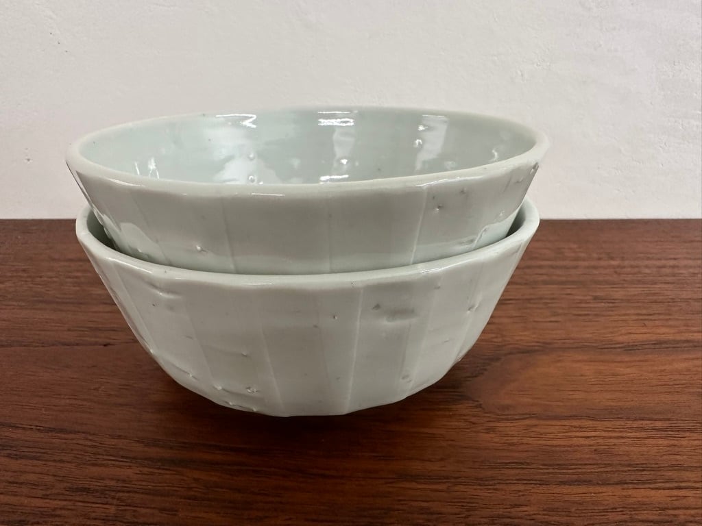 石つぶが混ざった磁器土を使った鎬鉢 鎬のところが透けて見えています