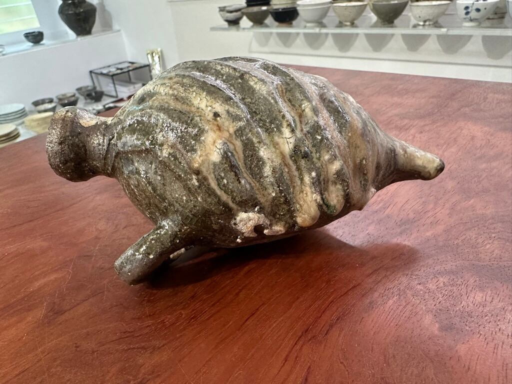 こちらのかけはないれは一点もの 斜めに入れた鎬にも釉薬が溜まって小ぶりですが存在感もあります