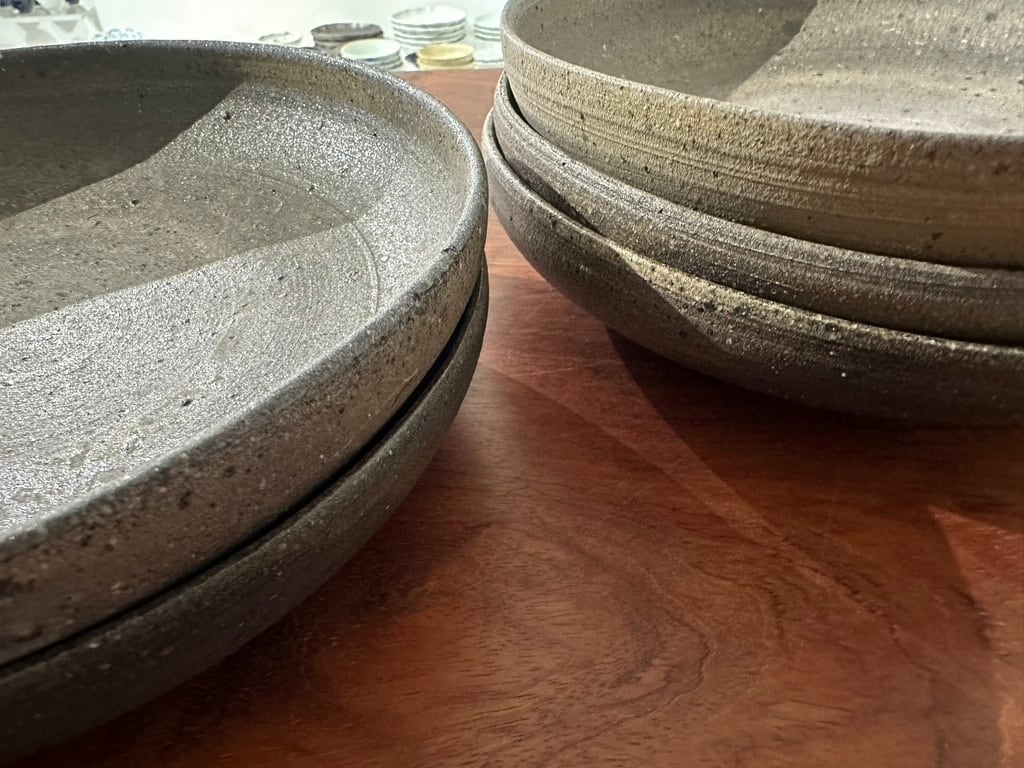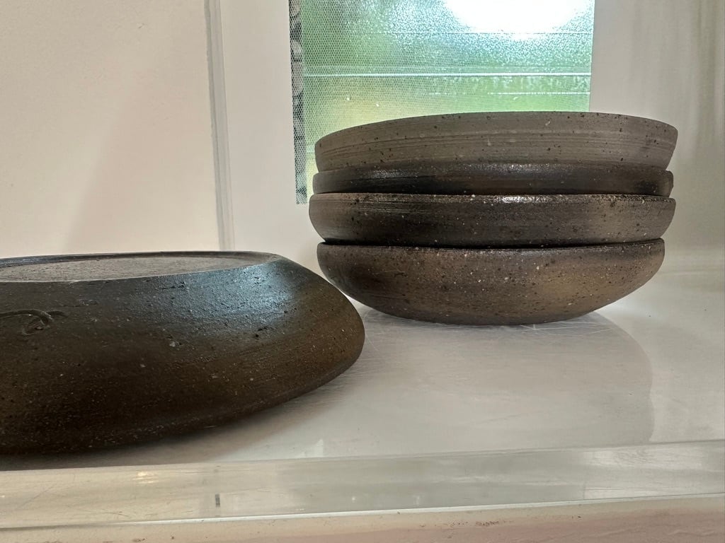 焼き〆浅鉢は見込みが平たく作ってありますので一枚で盛り鉢に使ったり 家族それぞれにカレーやパスタなどにもおすすめです