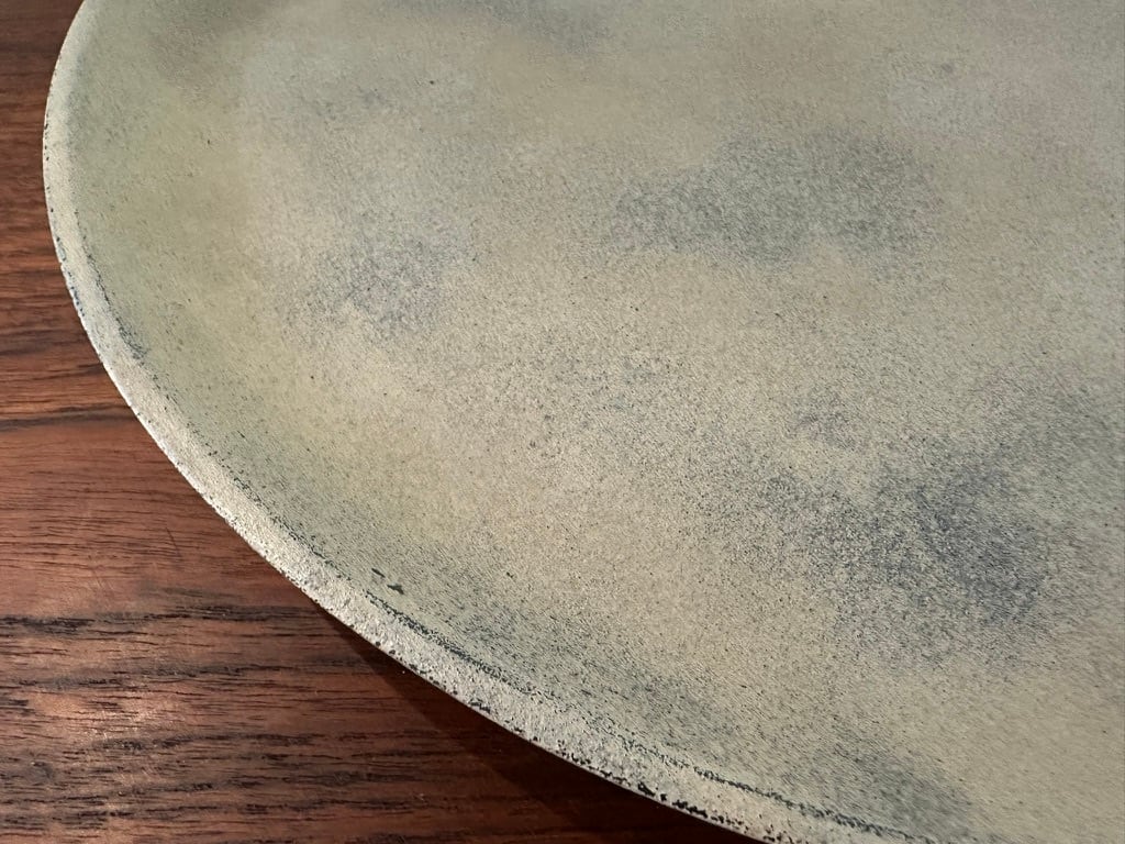 お盆の表面処理は青銅塗りという漆塗りの技法をアレンジした方法で行っています。
