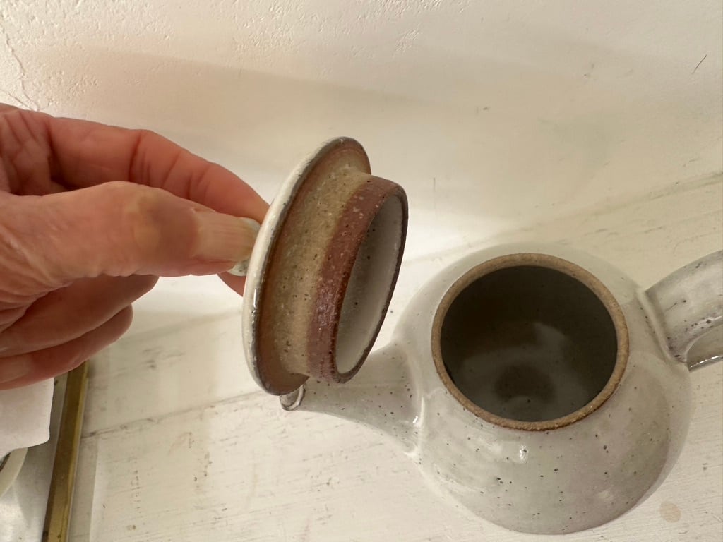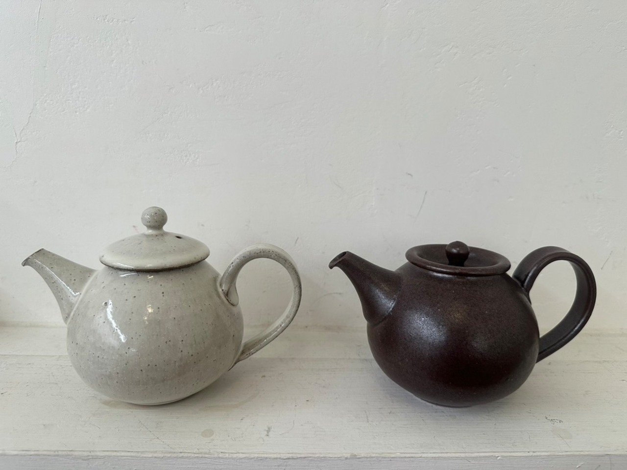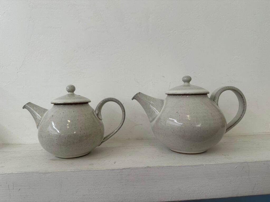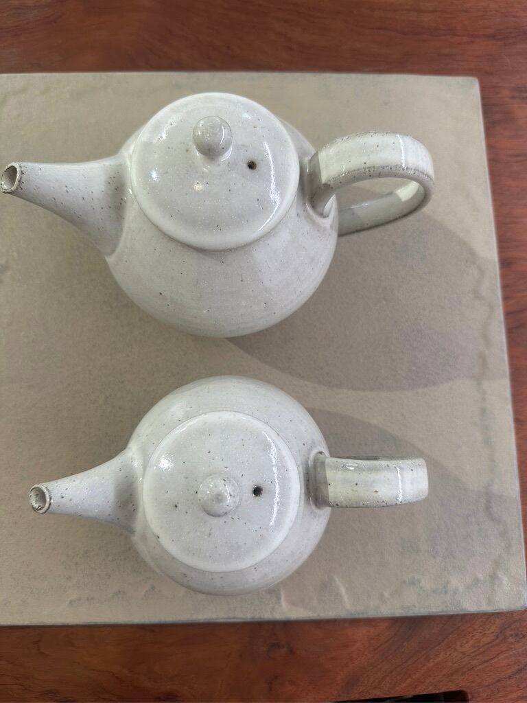 使い勝手の良いポットを作られる事でも人気のある萩原千春さんの白釉ポットが新たに届きました。少しグレイッシュで柔らかな色 暖かみのある白釉は萩原さんならではの色味です