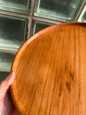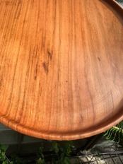 お茶碗や汁椀と小皿が一緒に置けるようにと、大きめのお盆をお願いしていました。大きなサイズになると材料を探すのも大変です。木目が均一でなく所々に濃淡があります