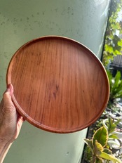 銅鑼鉢として食材を盛り合わる大皿で、お盆としてうつわを置いて使ったりと、自然な木目模様も一緒に楽しんでいただけたら嬉しいです