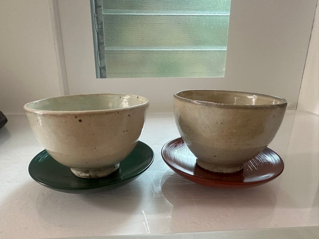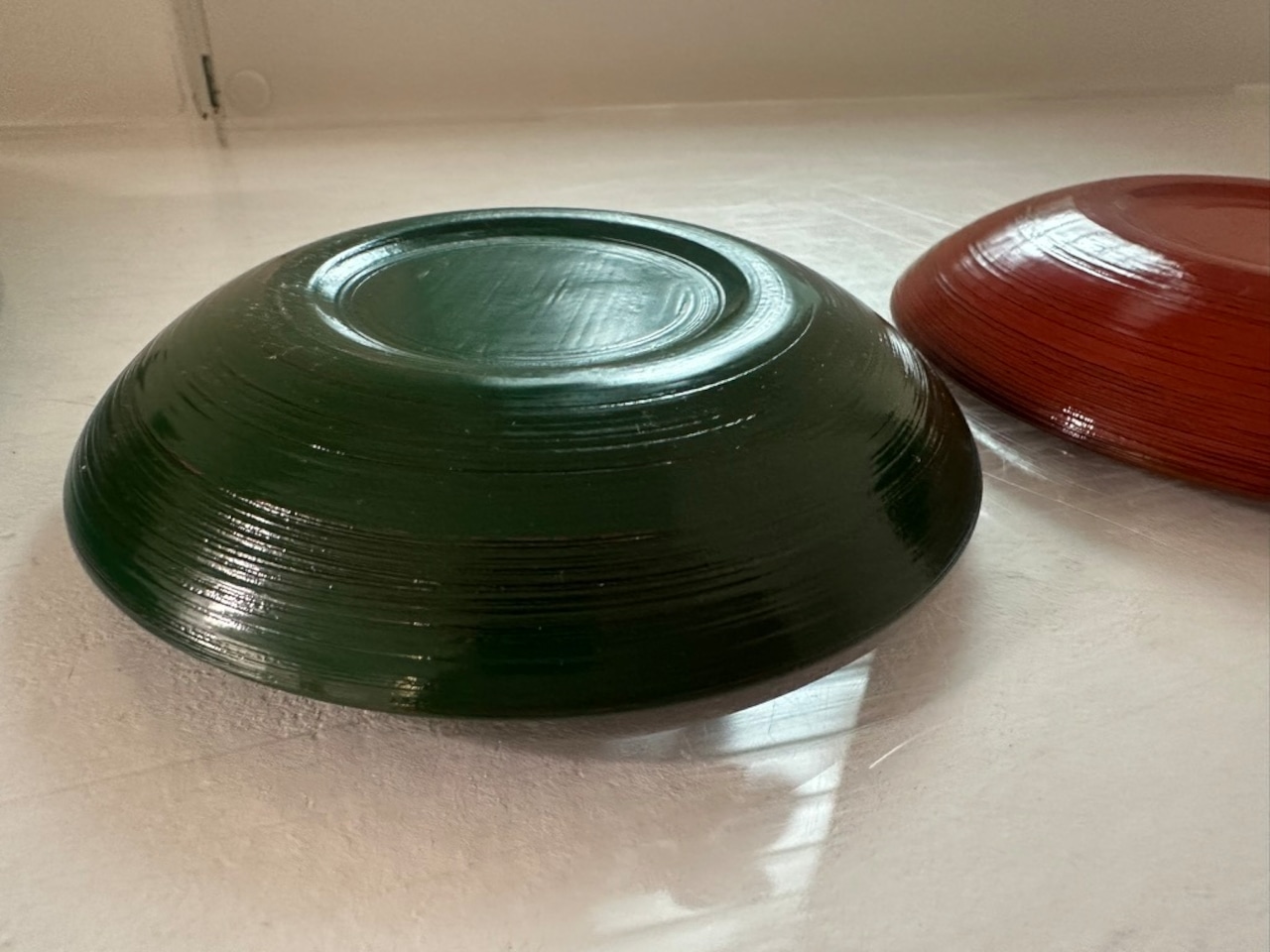 どちらも使って洗って拭いて を繰り返すことで漆に透明感が出てくると下に塗った漆の色がほんのりと透けて見えてきます。 陶器を育てるように漆も使うことで透明感が出て育ちます。