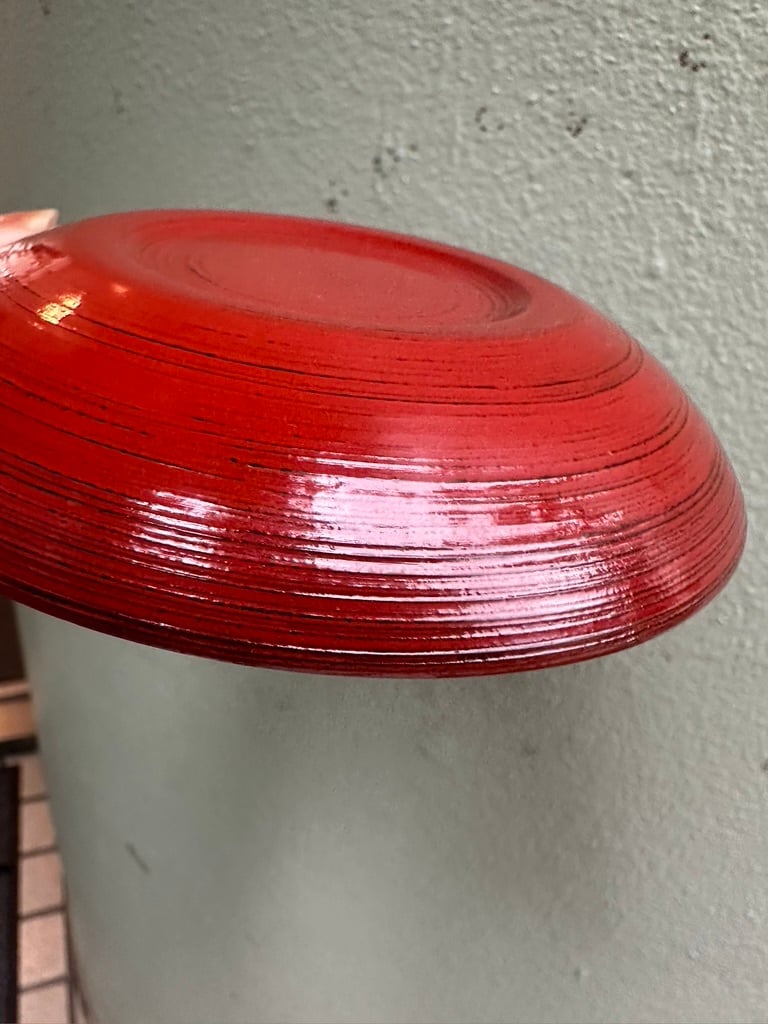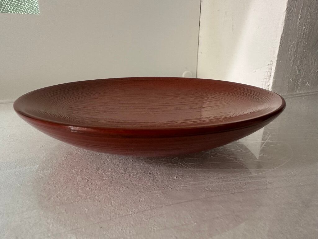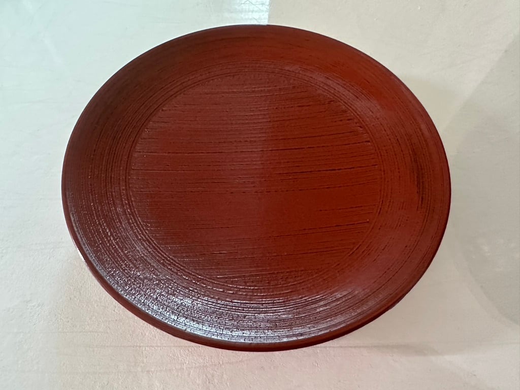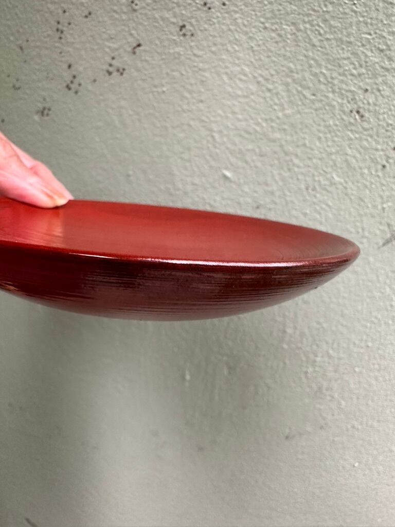 根来木皿は黒漆の上から赤漆を重ね、下の黒漆が見えるような塗り方をしています。