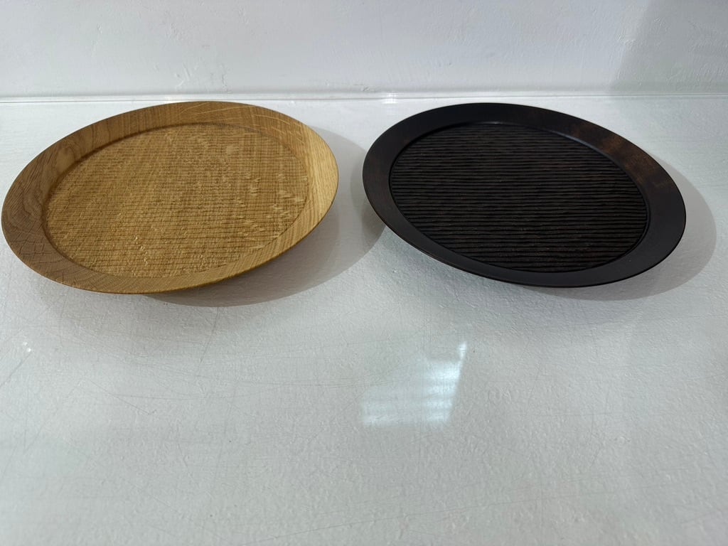 くさなぎさん7寸皿が出来上がりました。パンやパスタにも使える少し大きめな彫り目皿をリクエストしていました。ナラの自然にできた木目模様と彫り目跡が重なってとても面白い表情になっています。立ち上がった側面の模様も楽しめます。豆鉢や豆皿を置いてお酒の肴のワンプレートもお試しください