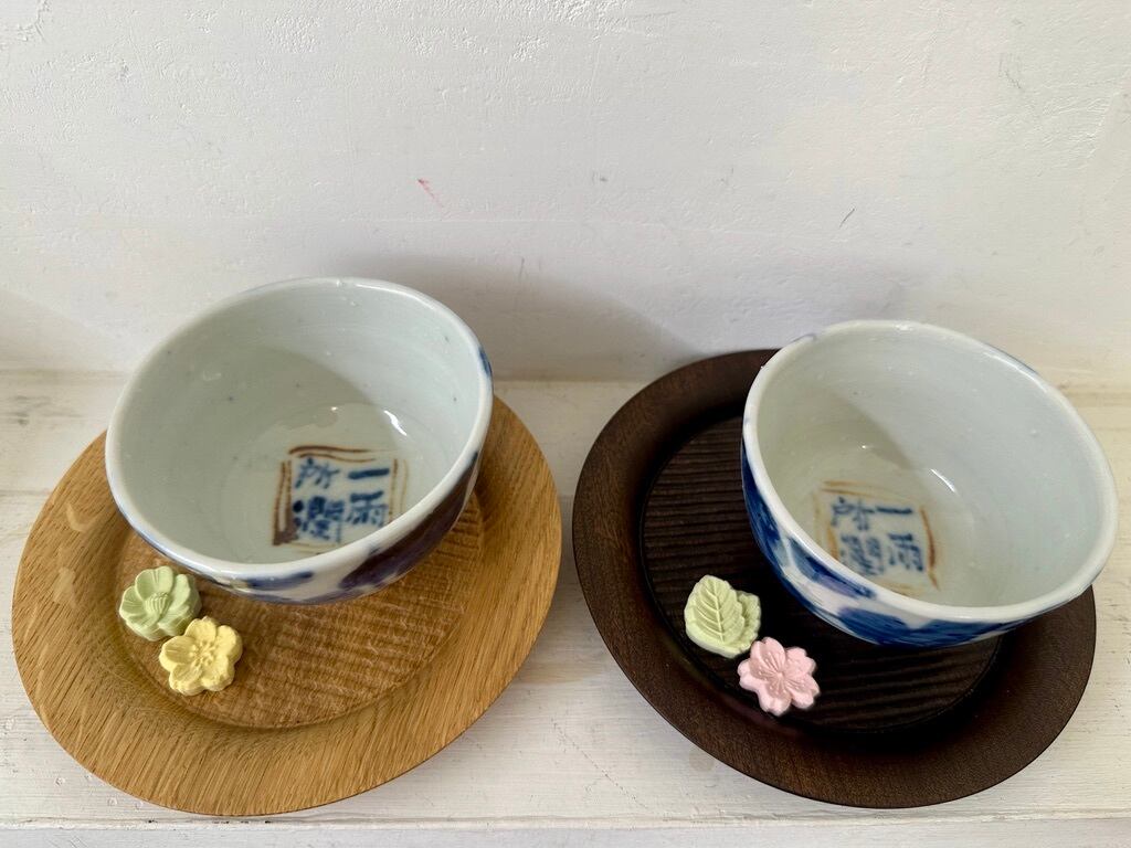 写真の1枚目は彫り目を横に、2枚目は彫り目を縦に置いてみました。お茶托にも、お菓子皿にも、また一品料理用の取り皿として 立ち上がりも重宝にお使いいただけます