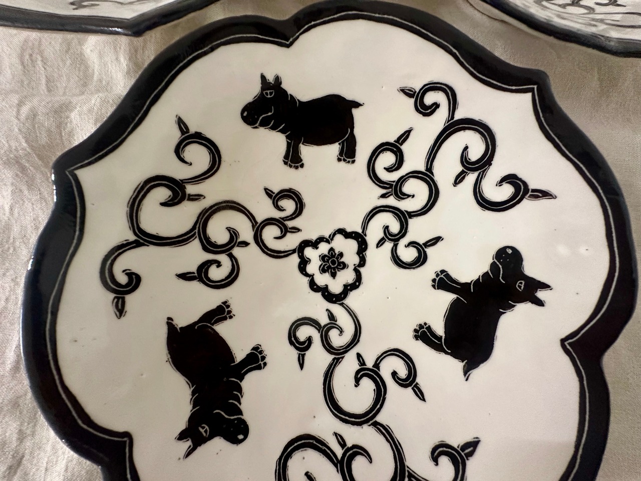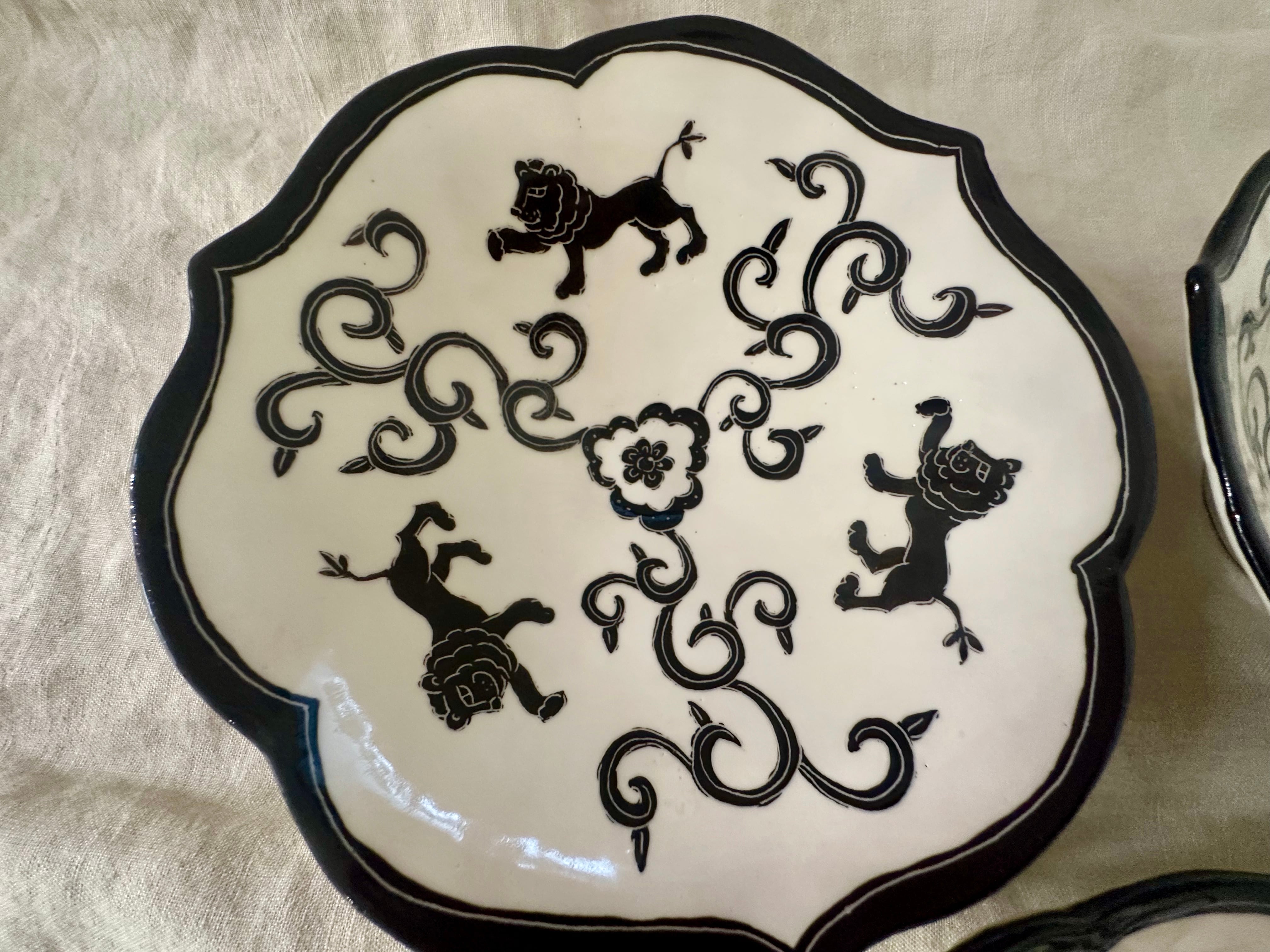 7寸輪花鉢 ライオン・馬・かば・トナカイ 【菅野一美】