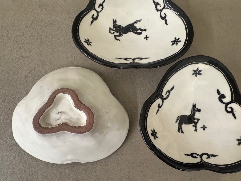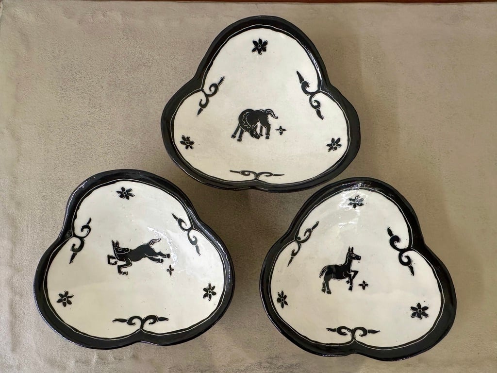 来年の干支をモチーフにした花形小皿です。馬の顔や動きを全て違って描かれています