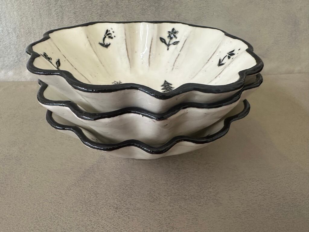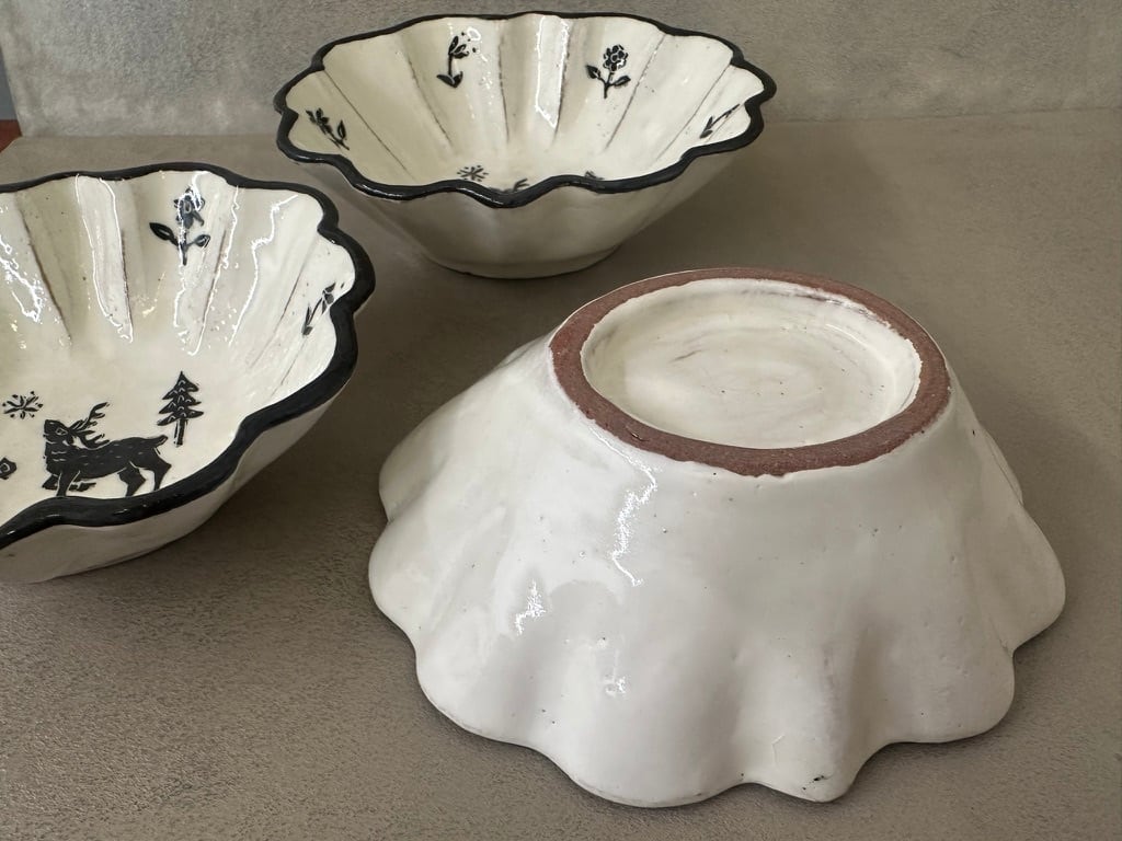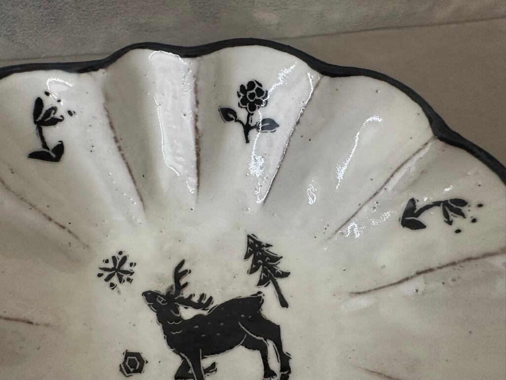 星を見上げているようなトナカイが描かれた輪花小鉢です