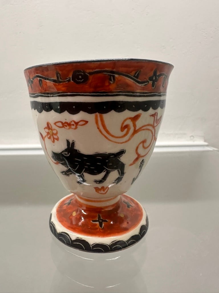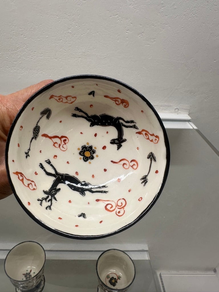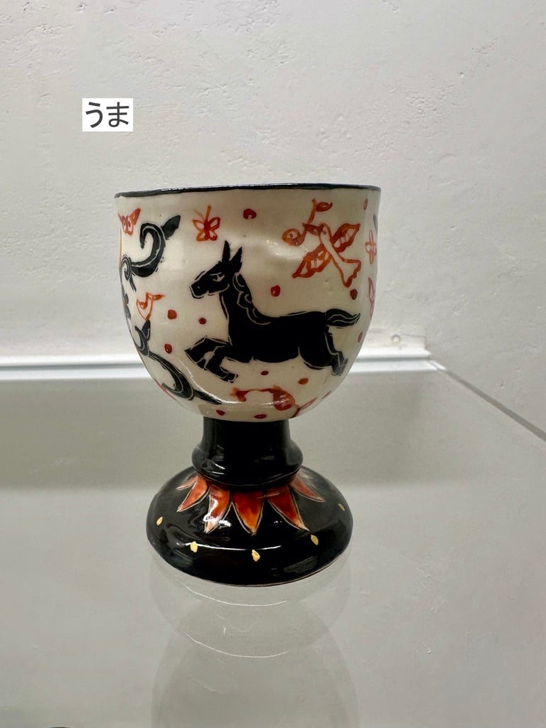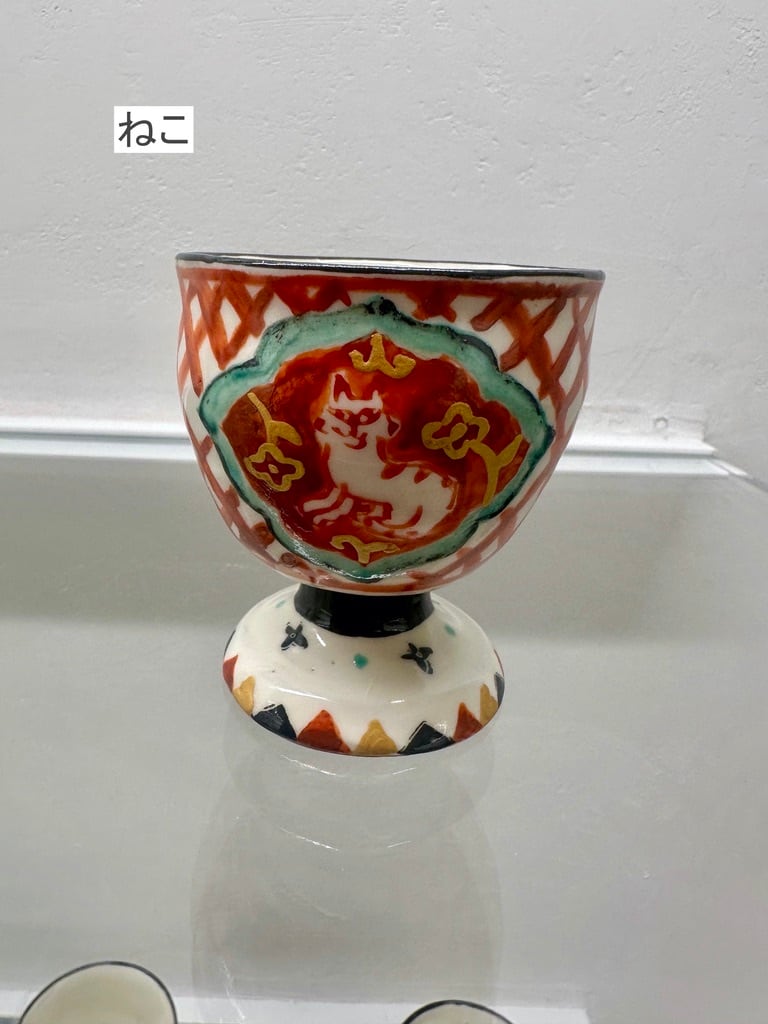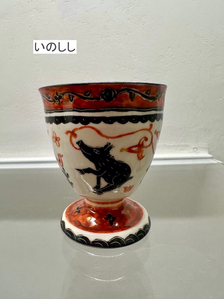 上絵高台付杯 馬・いのしし・鹿・猫【菅野一美】