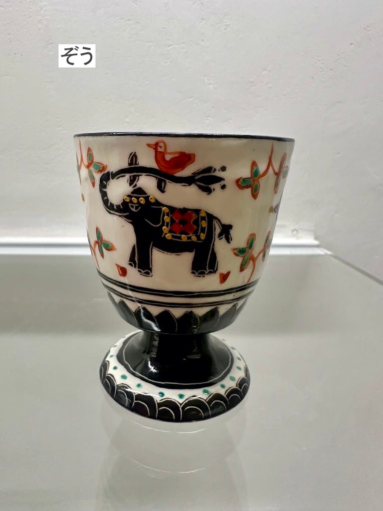 上絵高台付杯 羊・象・うさぎ【菅野一美】