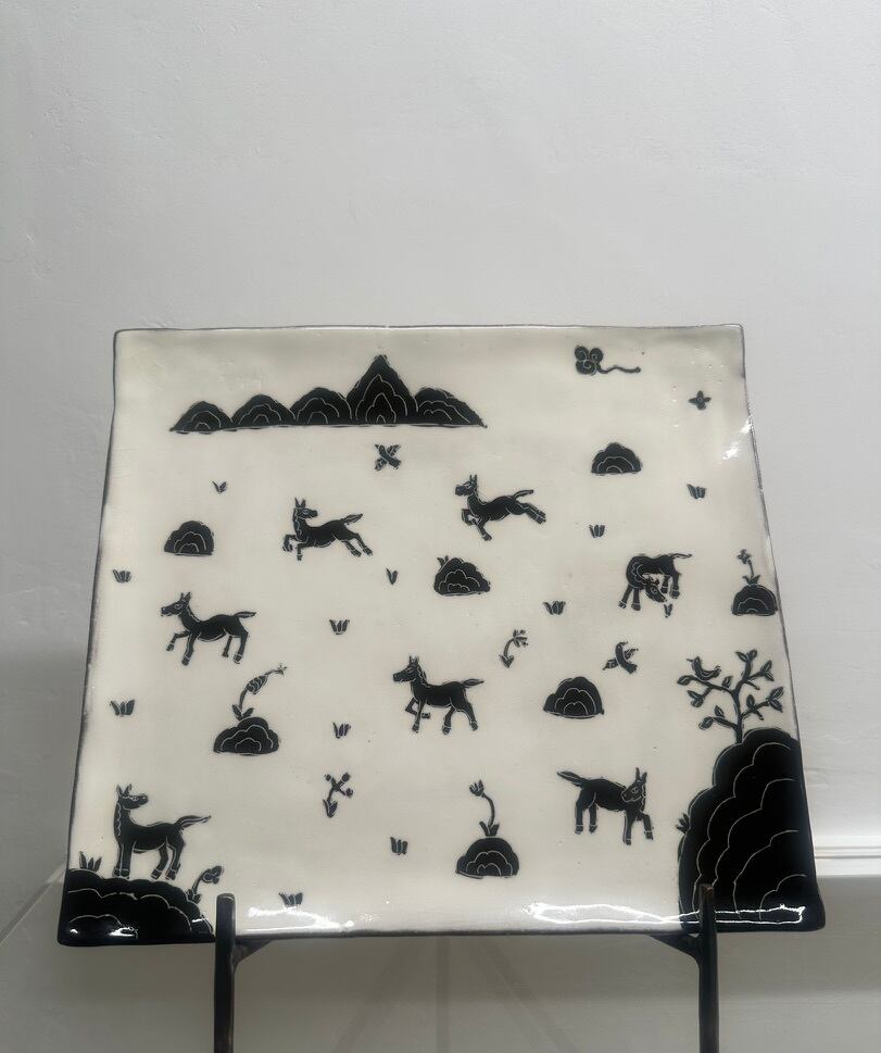 様々な姿の馬が描かれています。盛り皿にも、来年の干支がお皿いっぱいに7頭も描かれていますので飾り皿としてもぜひお楽しみください