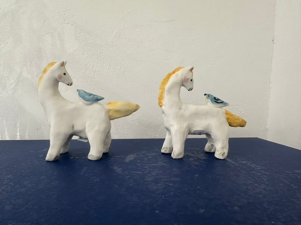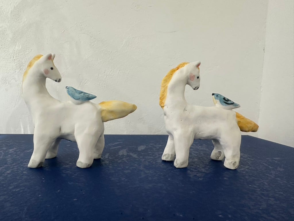 左の馬 頭から尻尾まで約8センチ 厚み3.5センチ 高さ7,8センチ