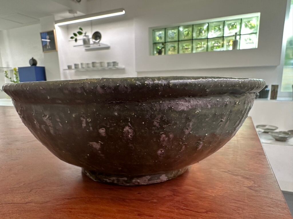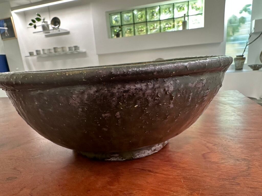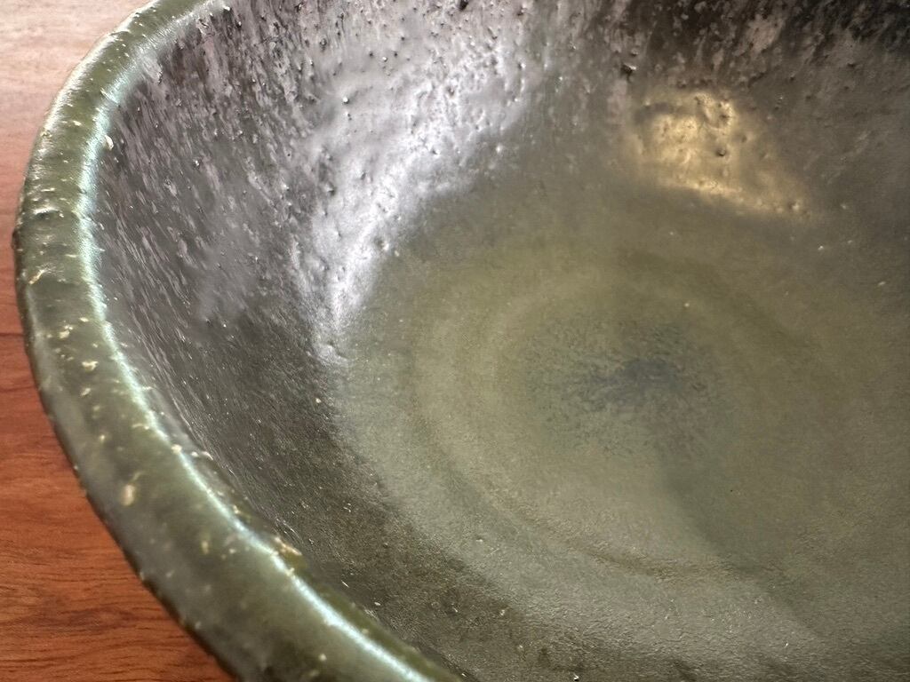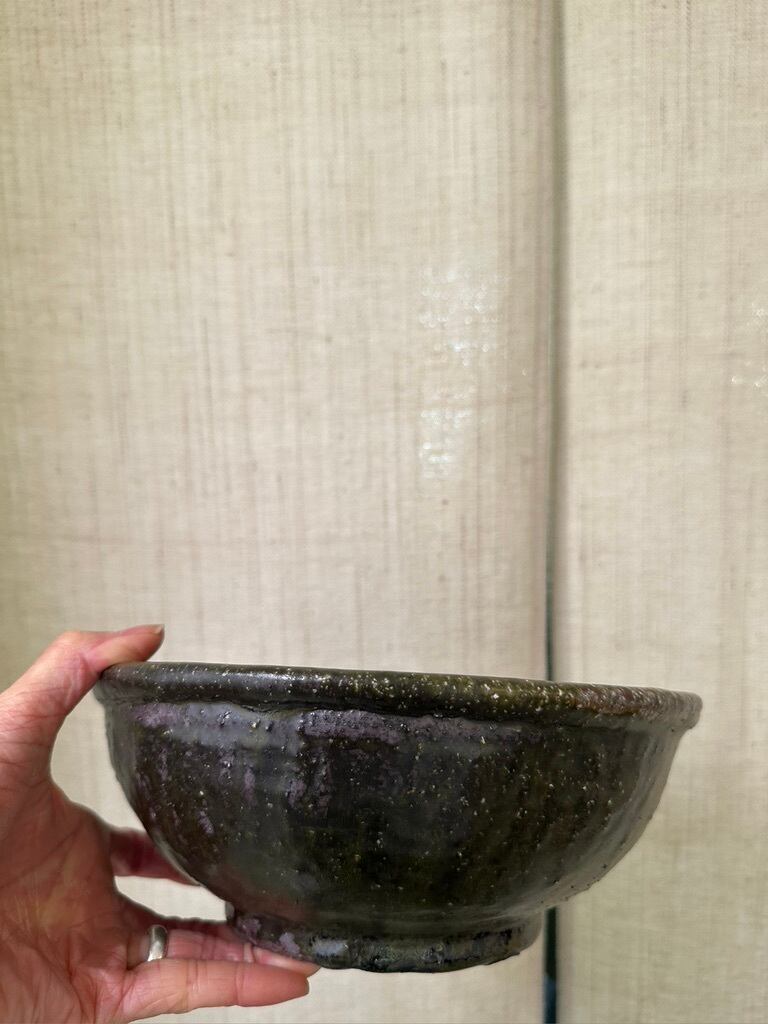 薪窯で焼いた一点ものの深い鉢です 複雑な色を見せている黒い釉は深みがあります