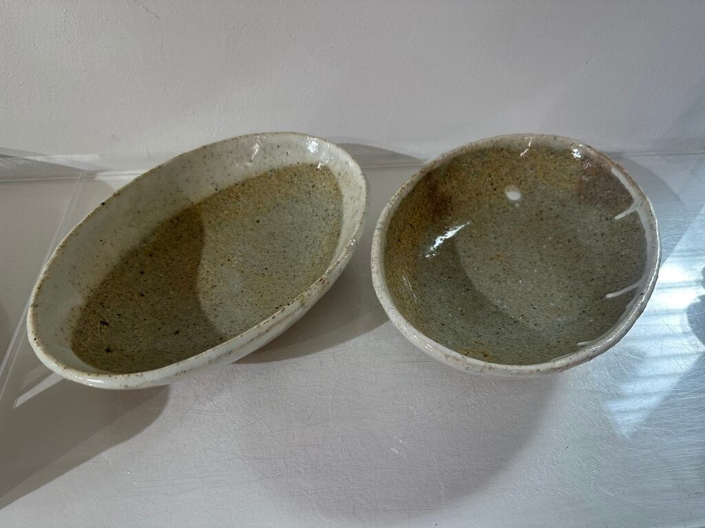 坪井さんは久しぶりにオーバル鉢を作られました。全体に細かな貫入が入った2種類です