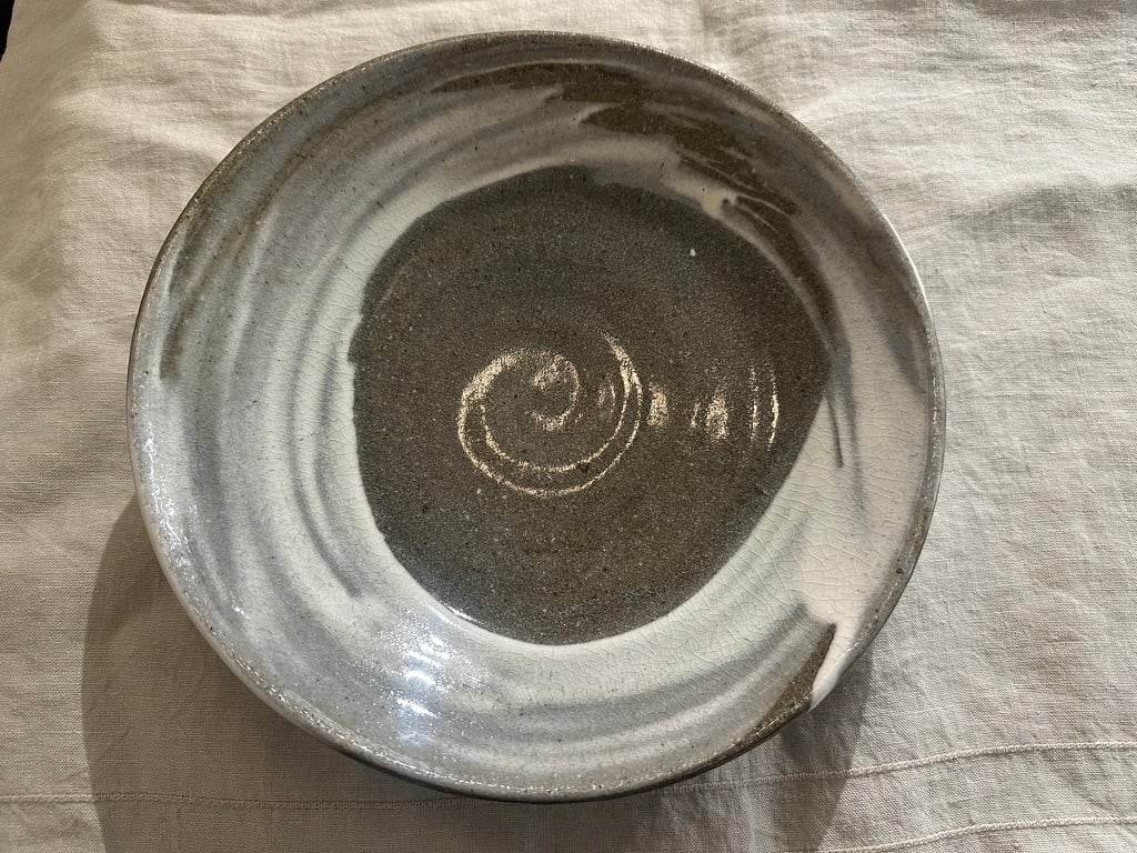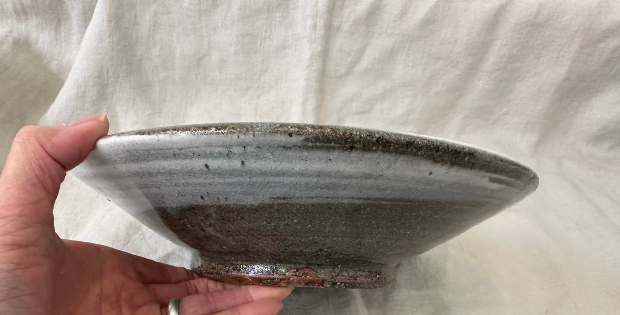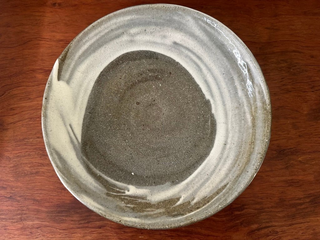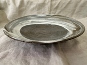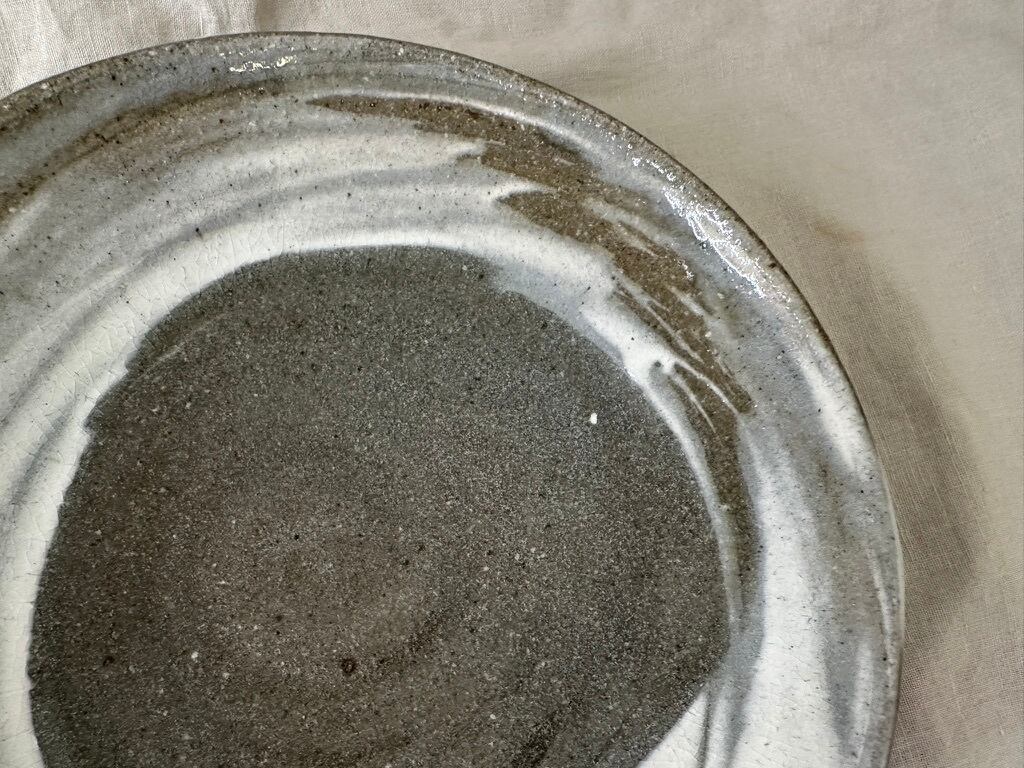 こちらの鉢は鉄分の多い黒い土に刷毛目を施しています。浅い大ぶりな鉢になります。真上からも横から眺めてもそれぞれに刷毛目の模様が面白く飽きない一点ものの鉢です