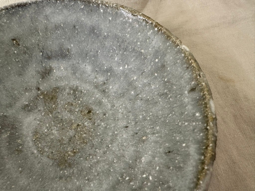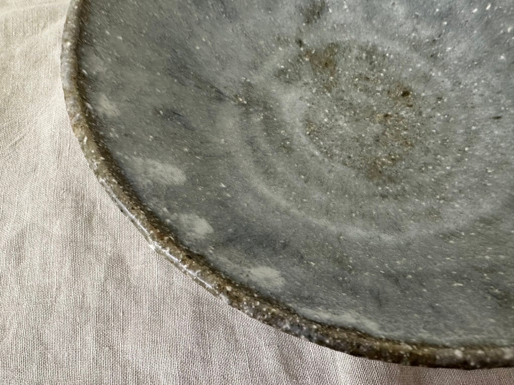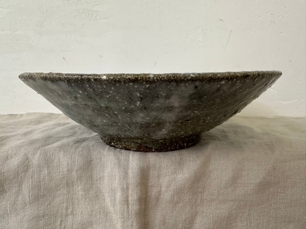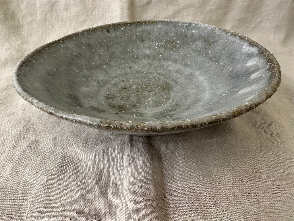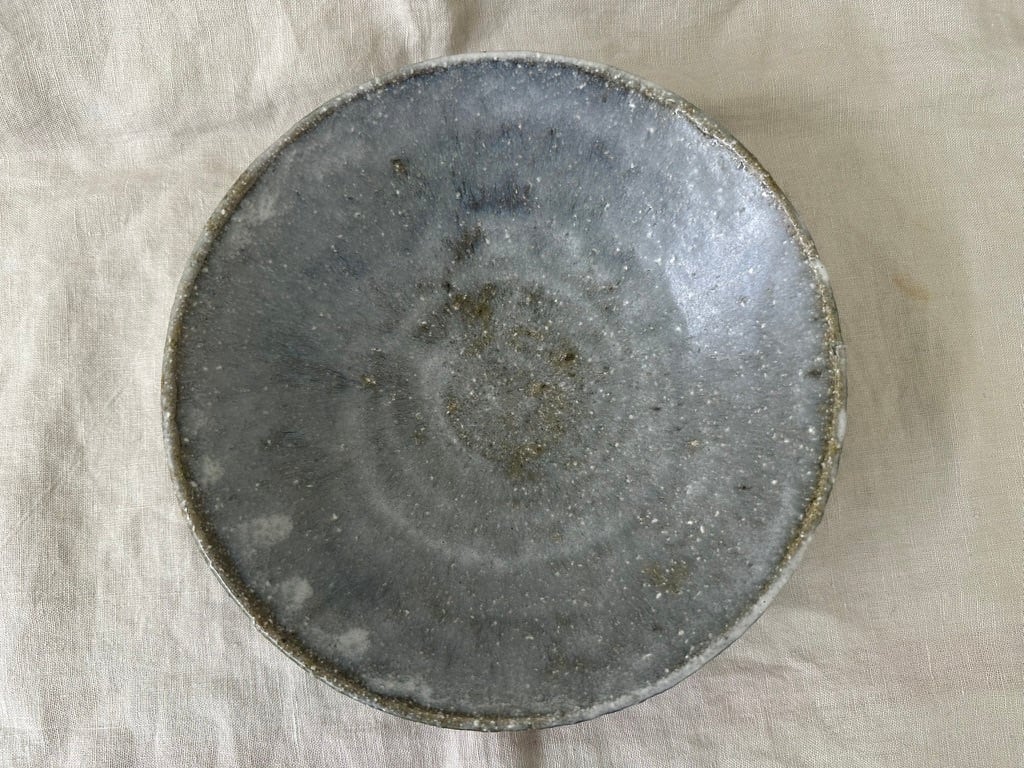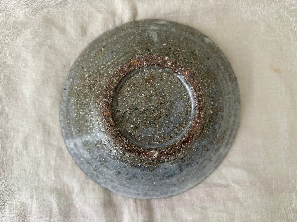 八百津町で出会った土を使った薪窯で焼いた一点ものの鉢です。全体にマットな白い表情に仕上がっています。緩やかな立ち上がりのある鉢の形、春野菜パスタにもお勧めです
