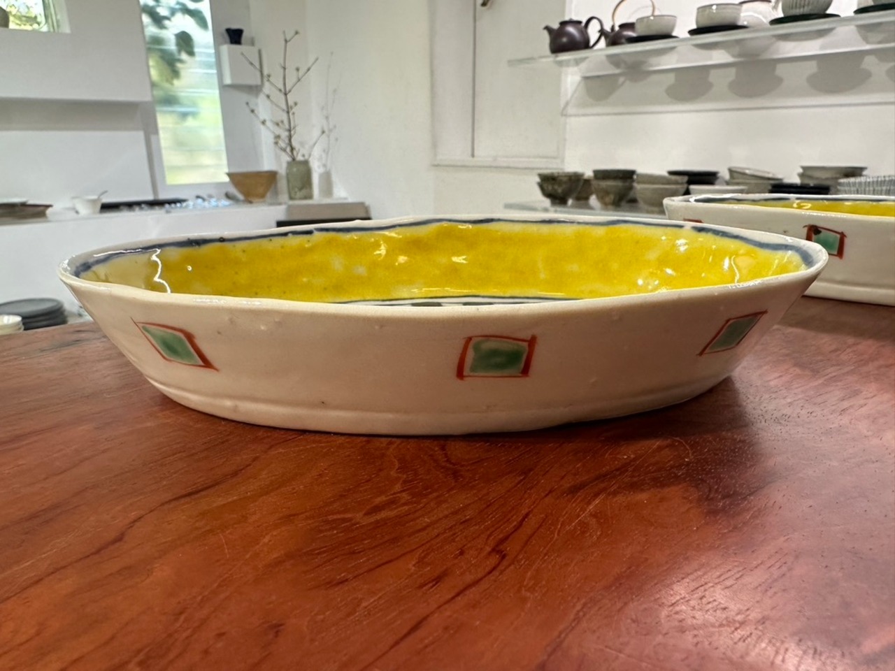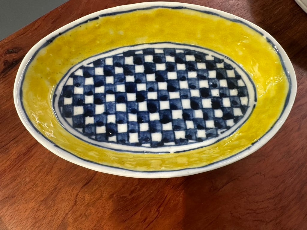 黄色の深皿は呉須の青がポイントになっています