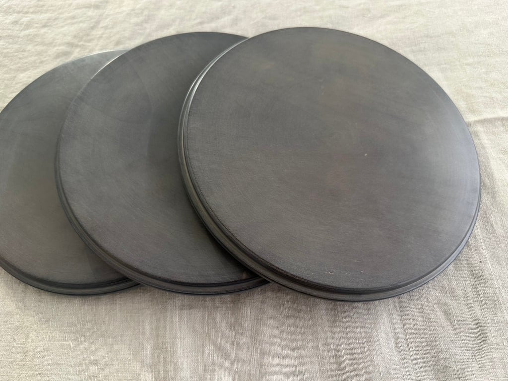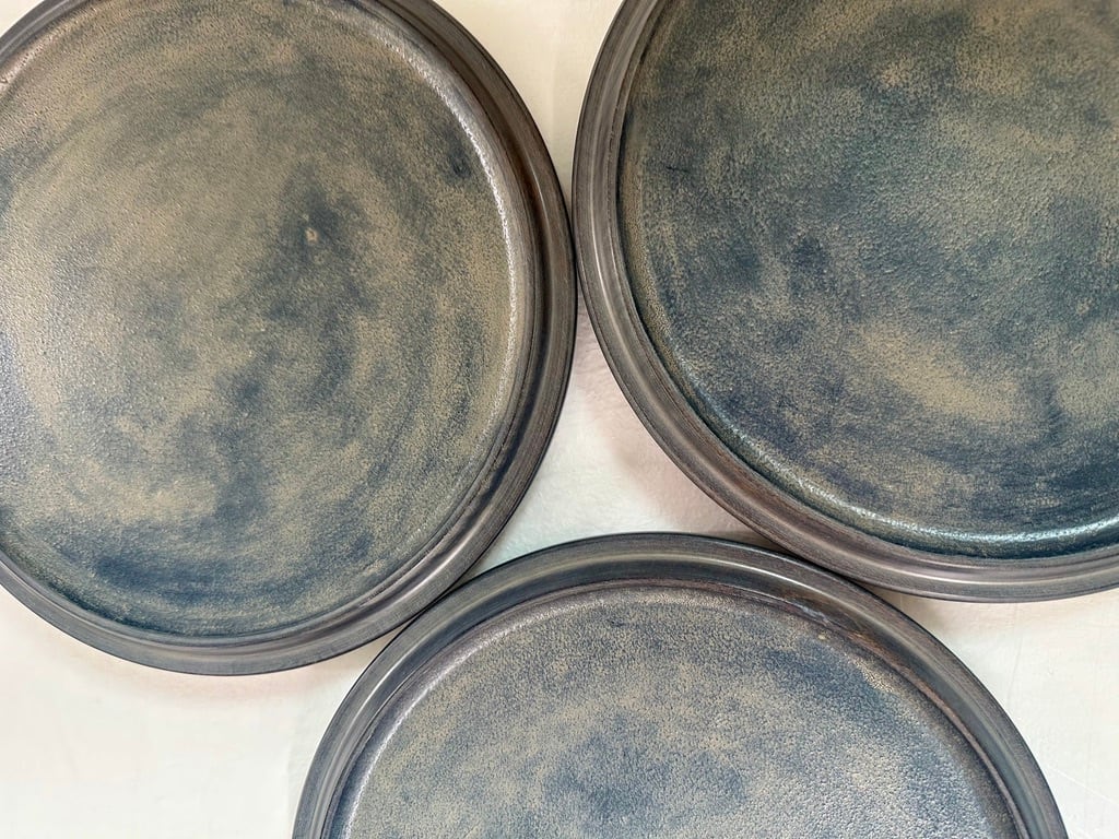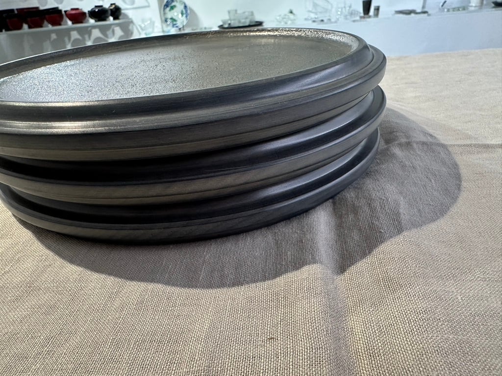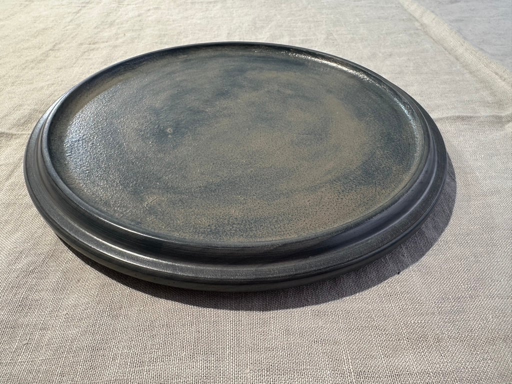 陶器のような見た目ですが、非常に軽いホウノキを使っているため、持ち上げると軽さに驚きます。蒔地仕上げのため、表面は硬く傷が目立ちにくく、水や油もしっかり弾くので、どんなお料理でもあまり気にせずに使えますし、トレーとしてもどうぞ使ってみてください。表面がざらっとしているのが特徴です。白漆仕上げで全体がグレイッシュな色味はカジュアルな食卓にも似合います