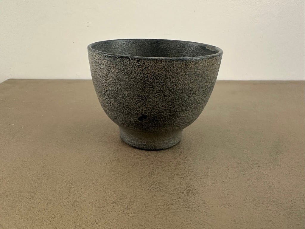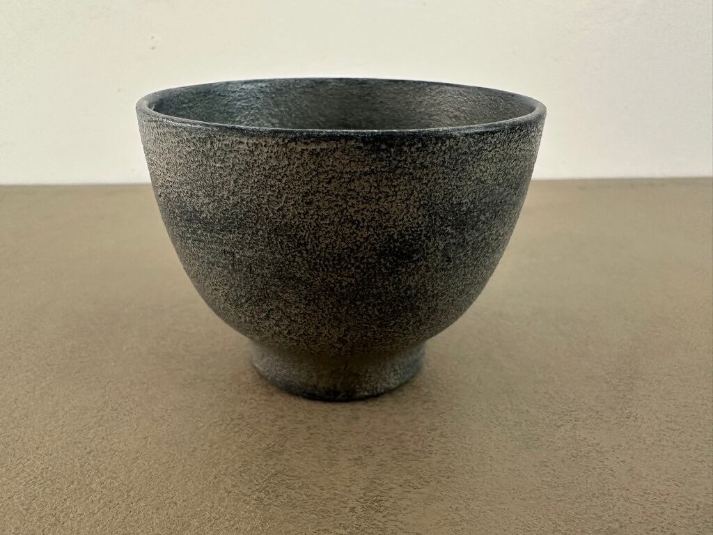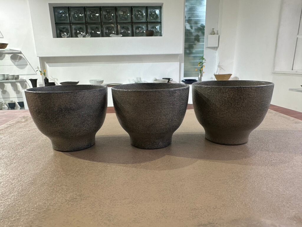 こちらは欅のぐい呑です。あえて欅の木目は見えないよう蒔地仕上げにしています。漆し塗りなのに全体にざらっとした質感に仕上げてあります。日本酒はもちろんですが煎茶よう小湯飲みに、デミタス カップ としてもお使いになってみてください。手入れがしやすく、温度を手に伝えにくい漆器のぐい呑は年間を通してお楽しみいただけます