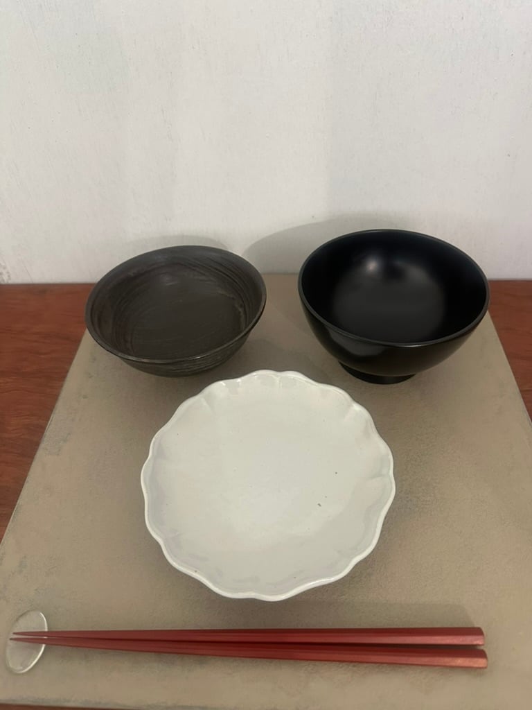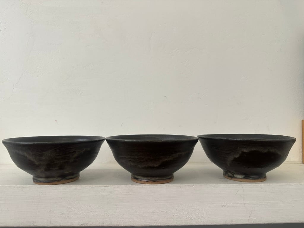 緩やかな刷毛目模様がふんわりと見える優しい黒のご飯茶碗です