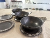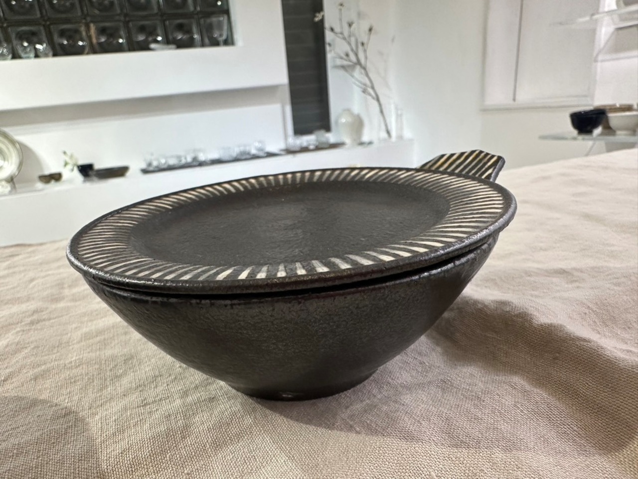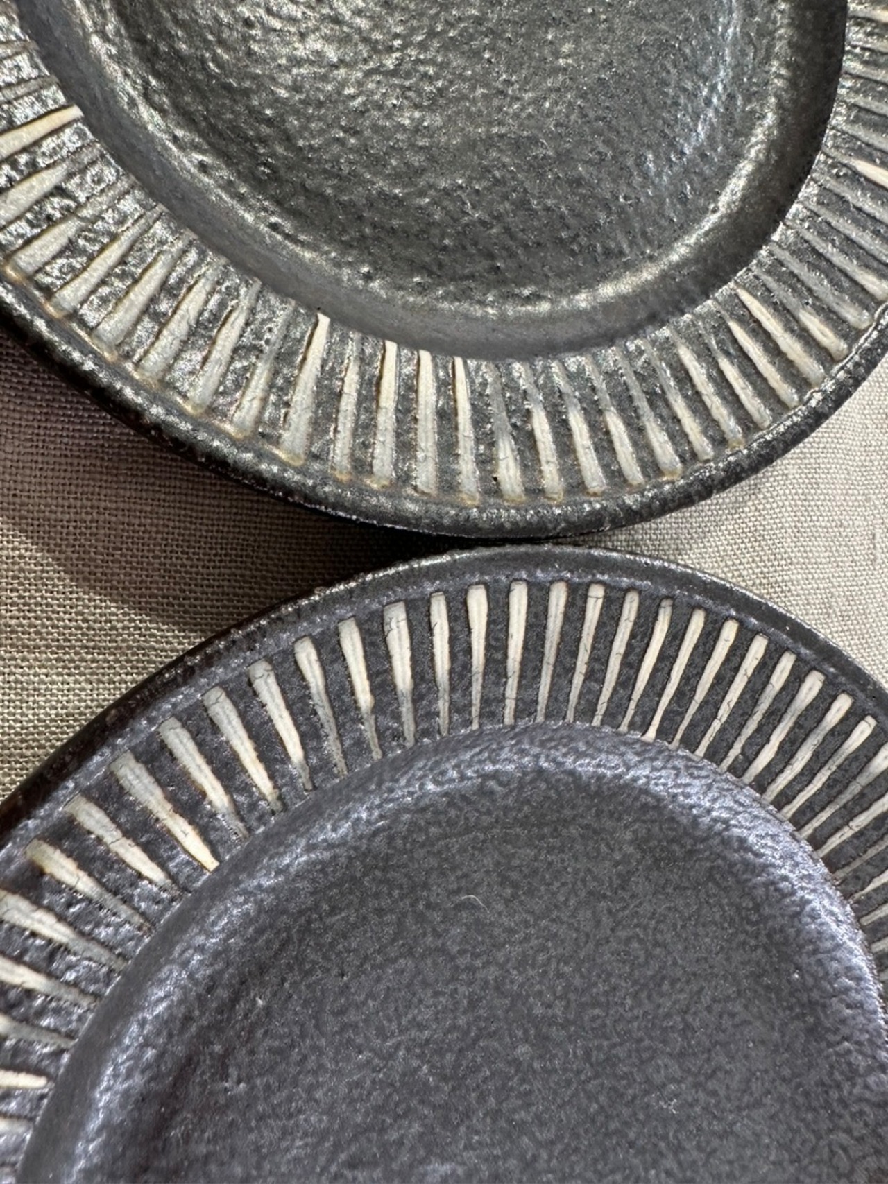 宮崎県で器を中心に制作しています。増渕さんの技術があってこその黒と白のトクサ文様です