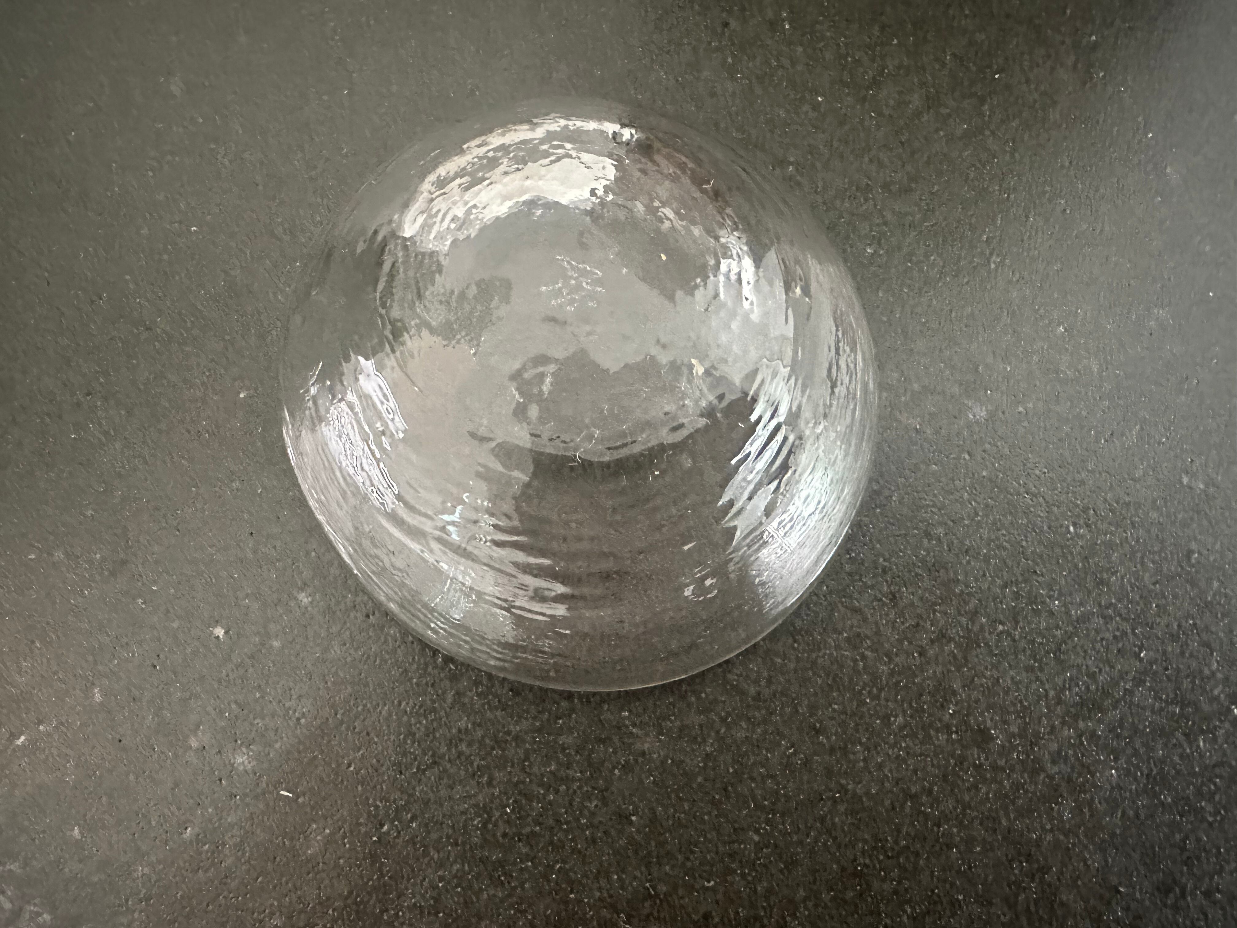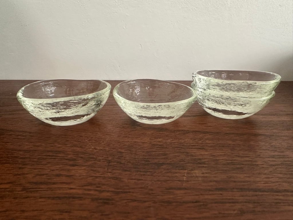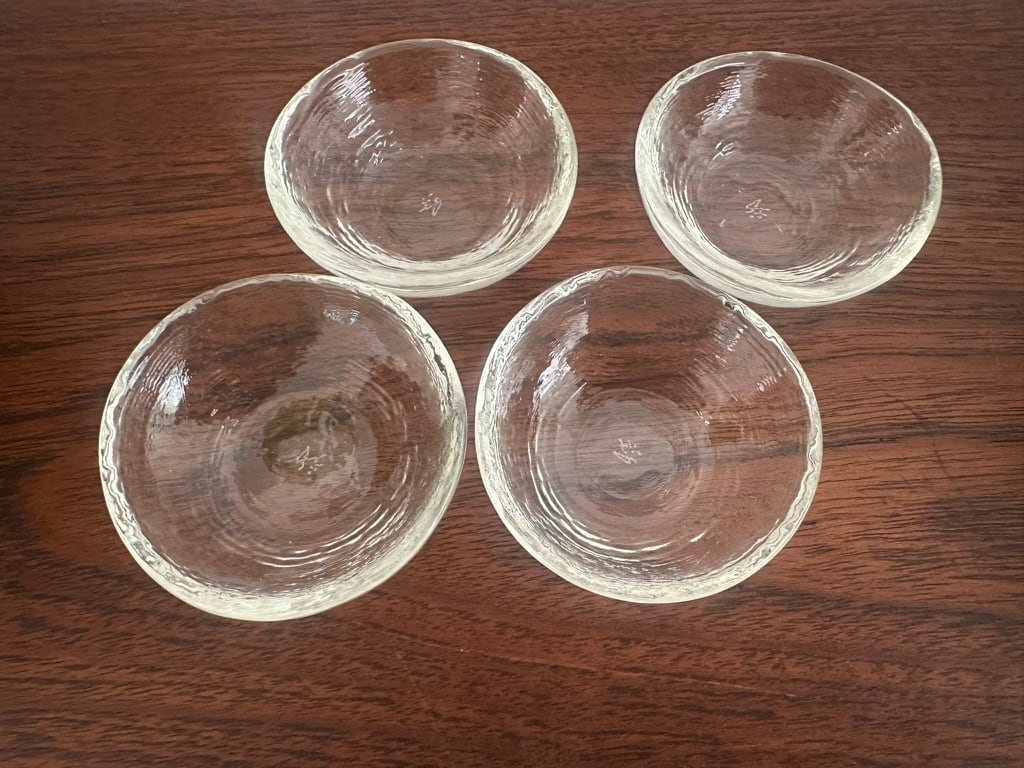 こちらの豆豆鉢は型にガラスを吹き込んで作られたもの 型に当たった面の揺らぎが面白みのある表情を見せてくれます。高台のないデザインです