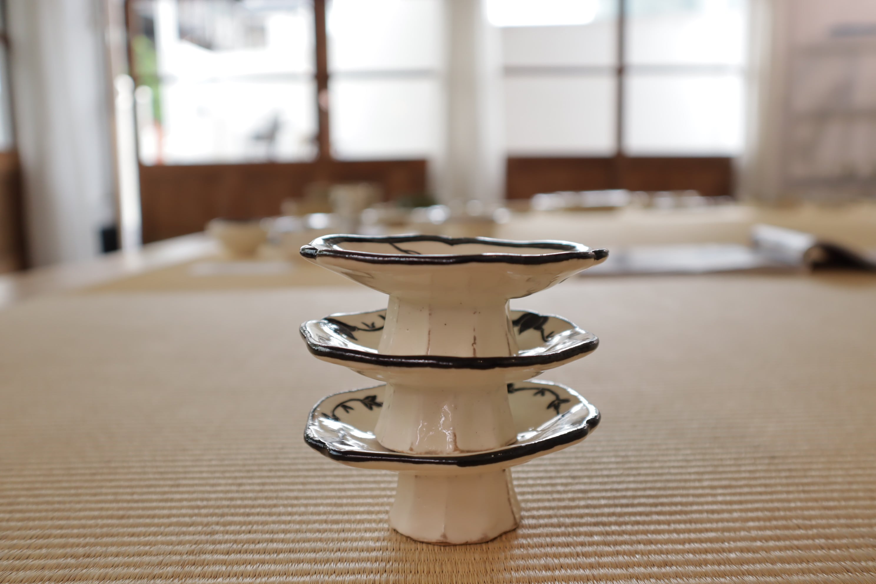 平たいうつわが並ぶ中に、小ぶりですが高さのある豆皿を添えると変化が出て食卓が楽しくなります。薬味皿やちょっぴりのスイーツやお干菓子など