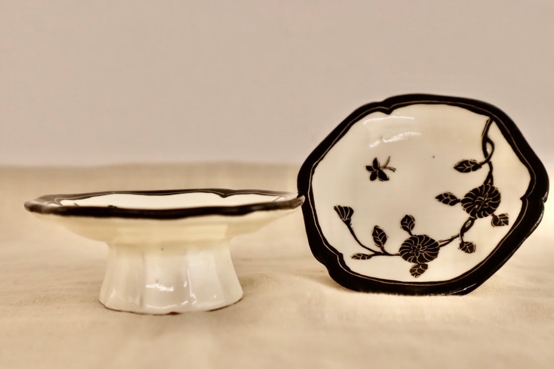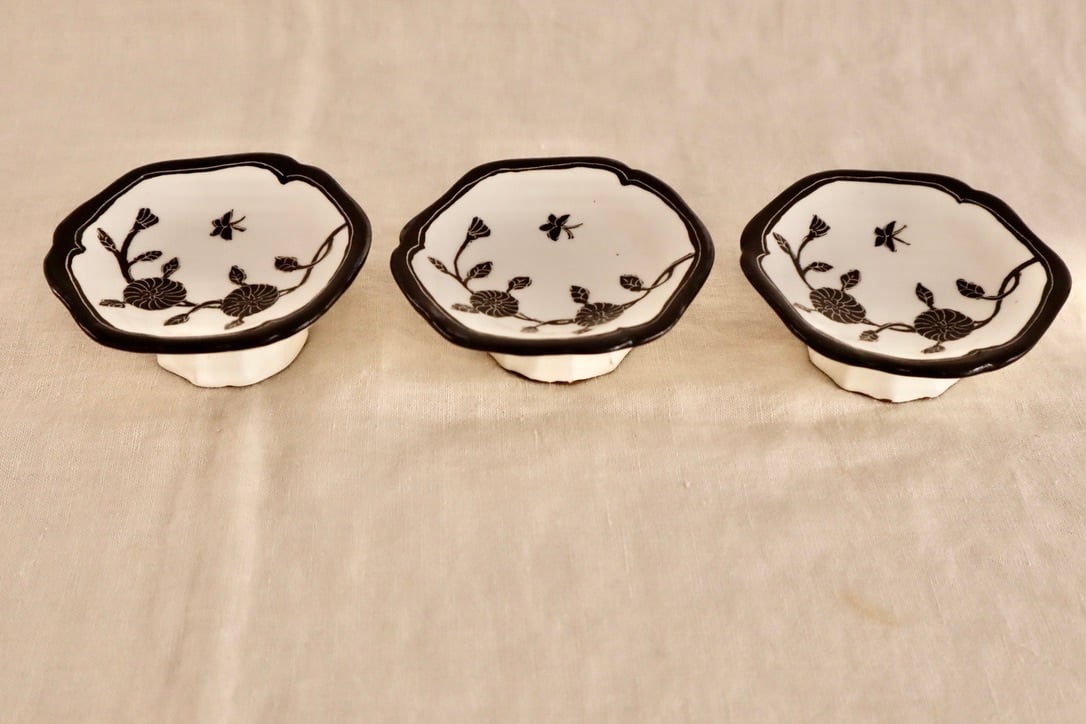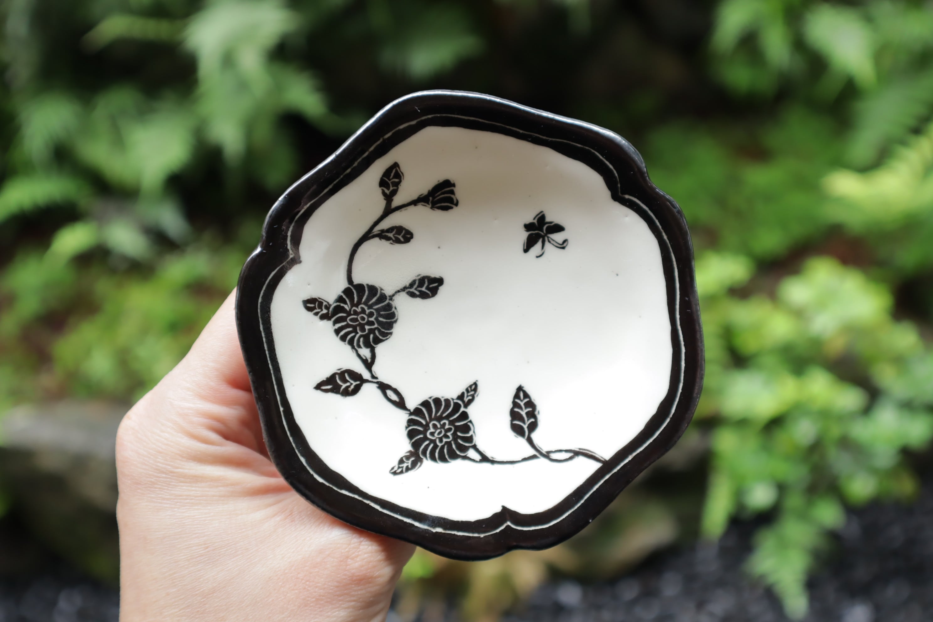 黒掻き落とし 高台豆皿 菊文 【菅野一美】