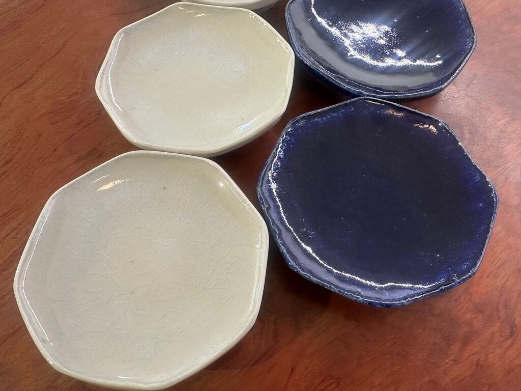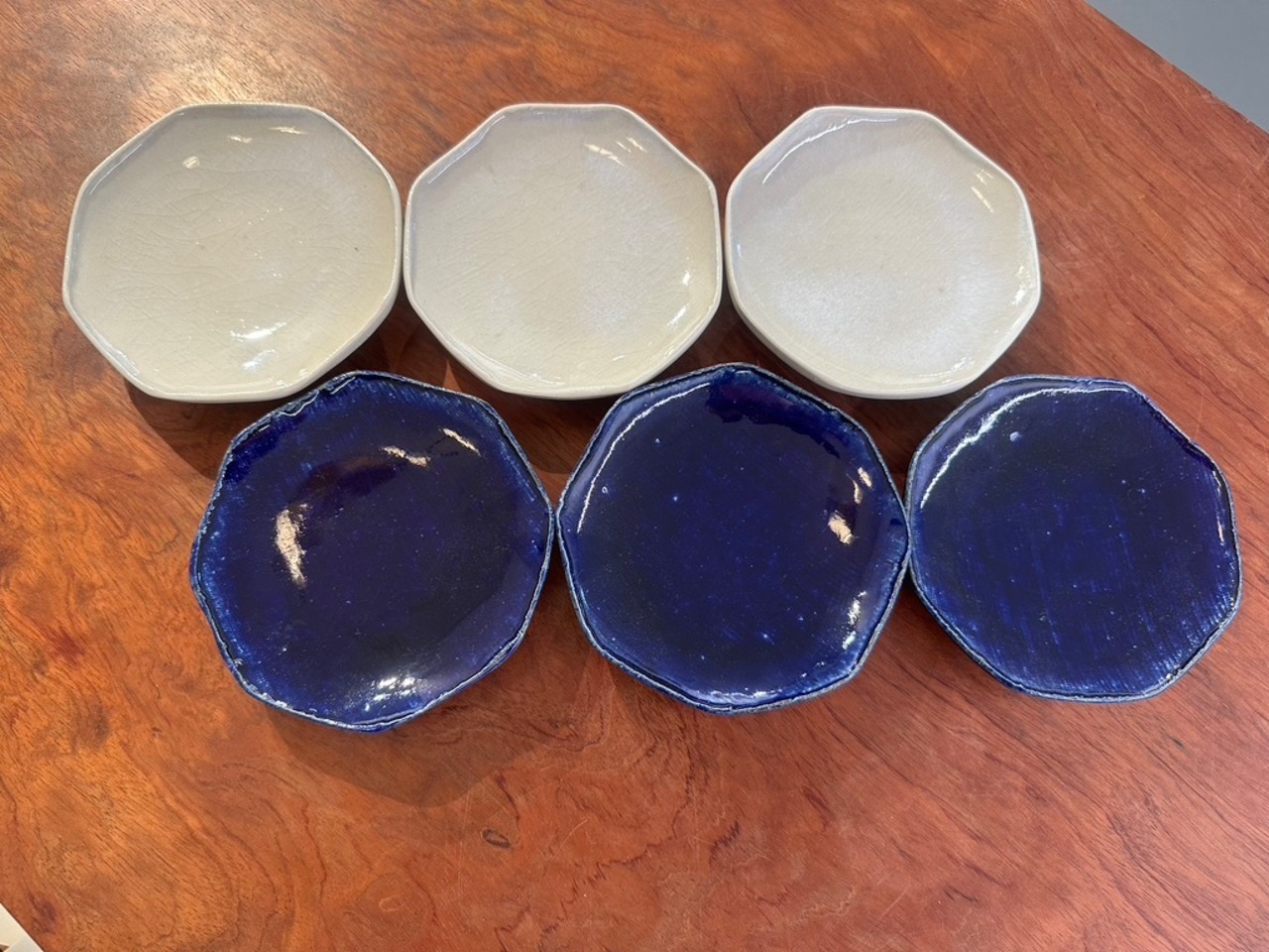 臼田さんの作品は瑠璃色と白色(柞灰)の2種類の色になります。