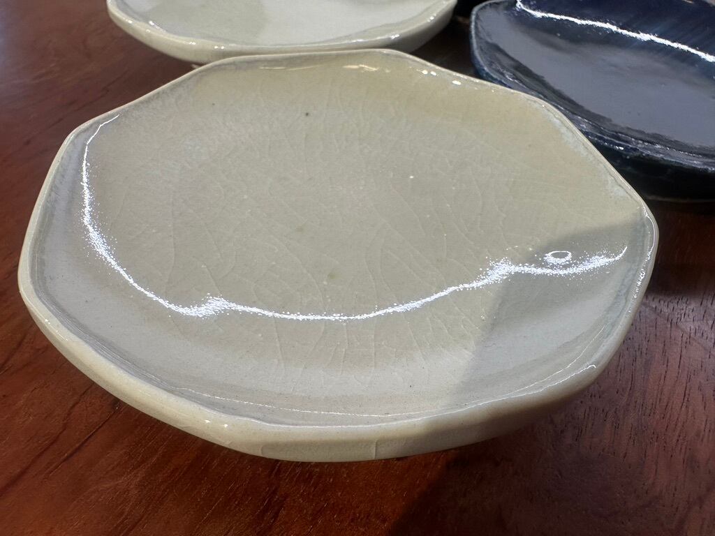 変形小皿なので様々な形の小皿と組ませるのも楽しめます。高台が高めに作られ特別感もあり、小さなクッキーやチョコレート、ナッツ類、薬味、梅干しも素敵に見せてくれます。