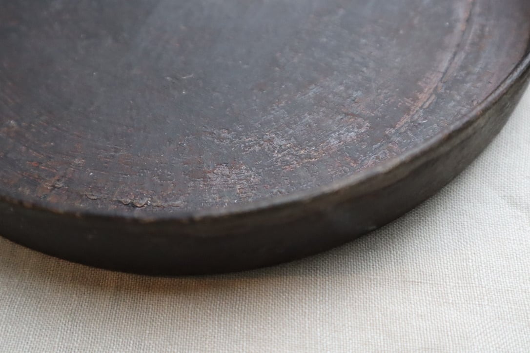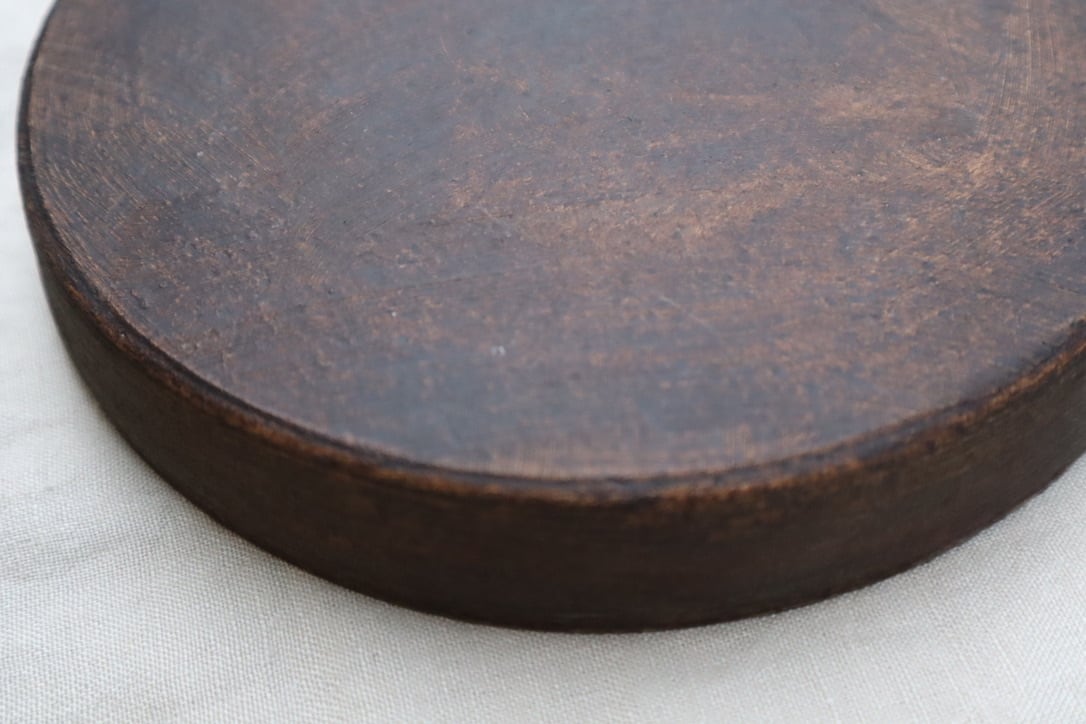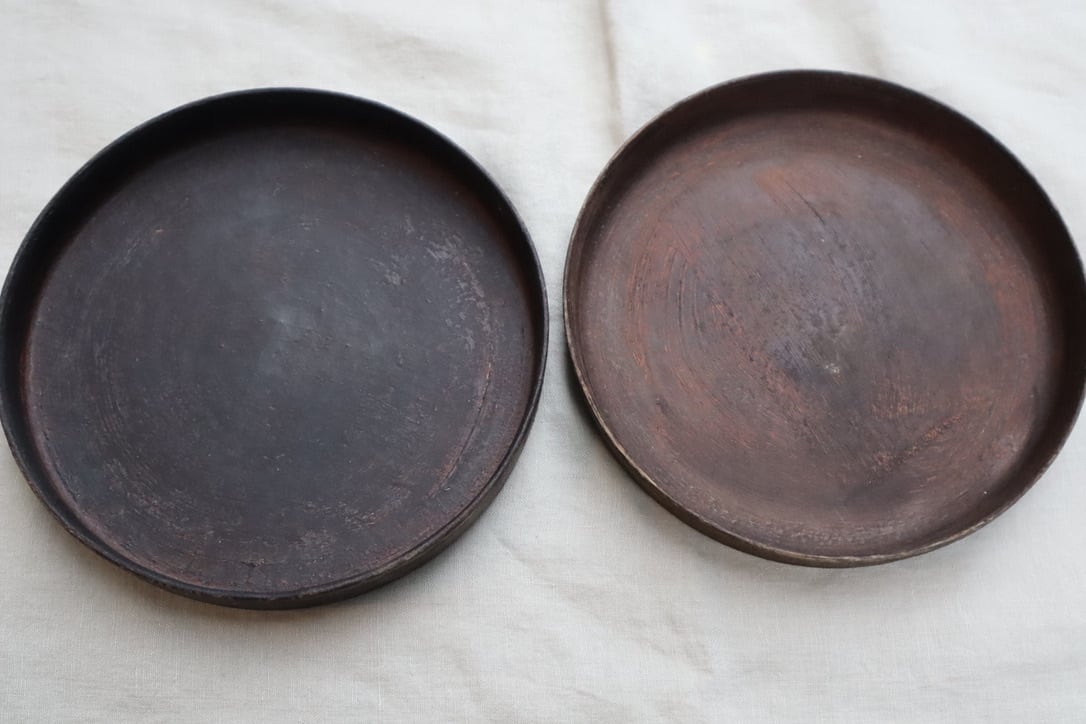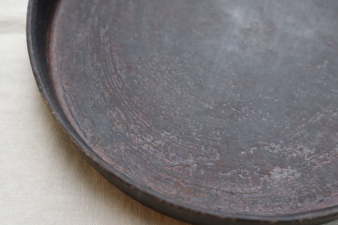 釉薬の代わりに漆を使うことで、油染みや匂いの染み混みがなく器としてとても便利に使うことができます。全体に漆を焼きつけてあるので両面ともお料理の器としてお使いいただけます。6寸は気軽に使えるサイズですので便利な銅鑼鉢、ひっくり返してフラット皿でお楽しみください