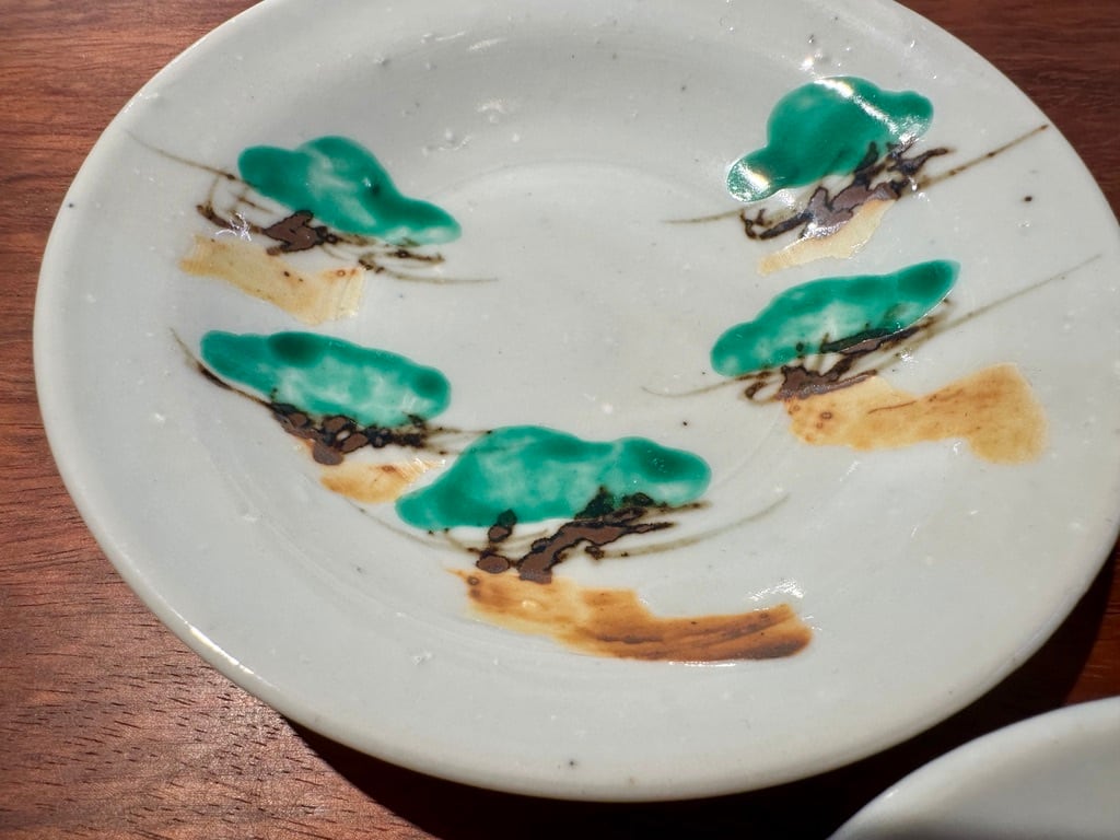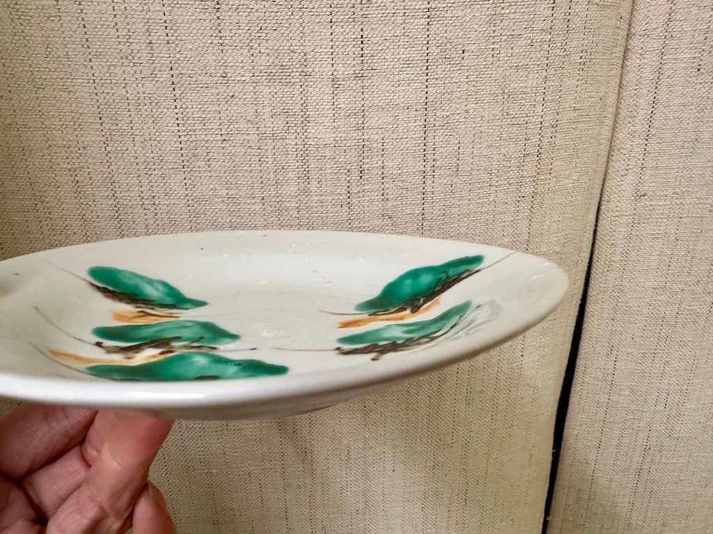 緑鮮やかな松の木が描かれた15センチのお皿です