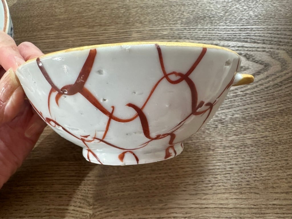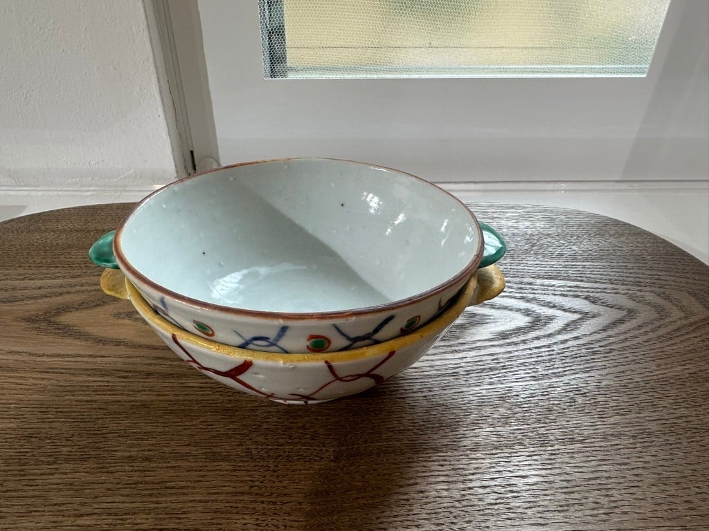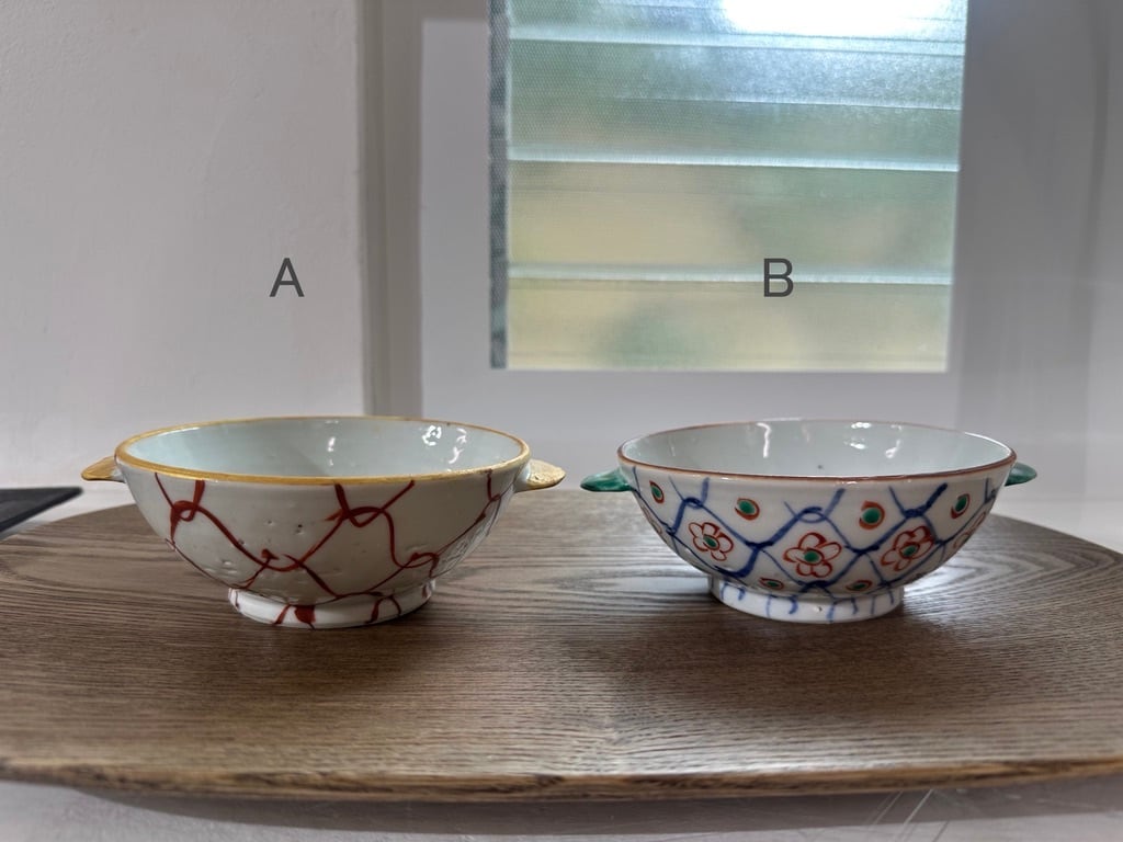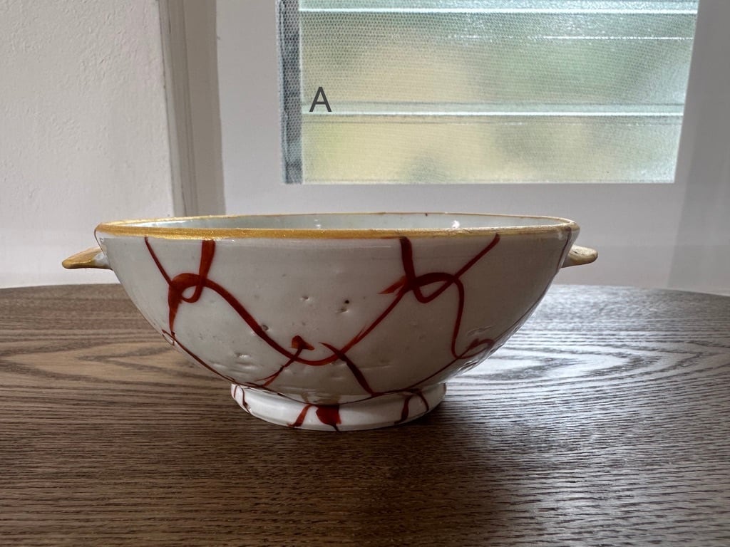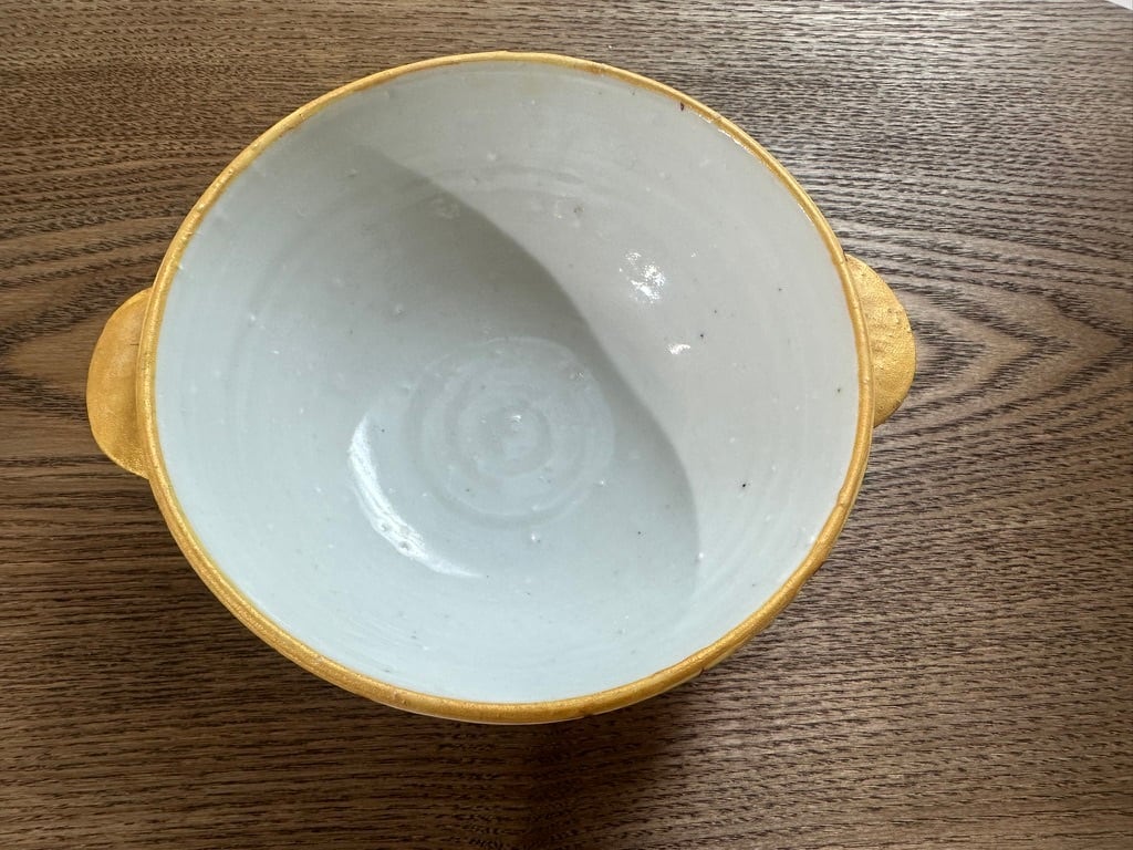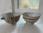 Aは縁一周が持ち手と同じ黄色い釉薬が塗られ、Bは縁の一周が鉄分の多いベンガラが塗られそれぞれ引き締まった雰囲気になっています