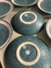 白化粧した縁取りに赤い小さな菱形模様を押してあり、大人可愛い雰囲気がとても魅力的です