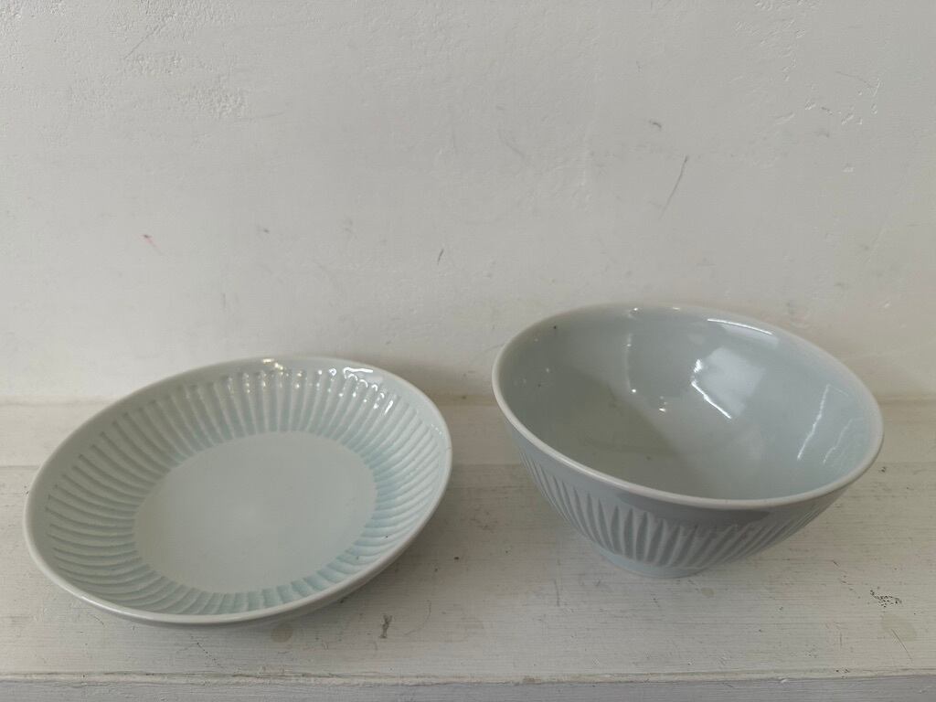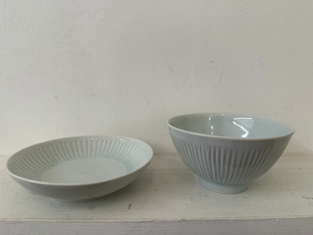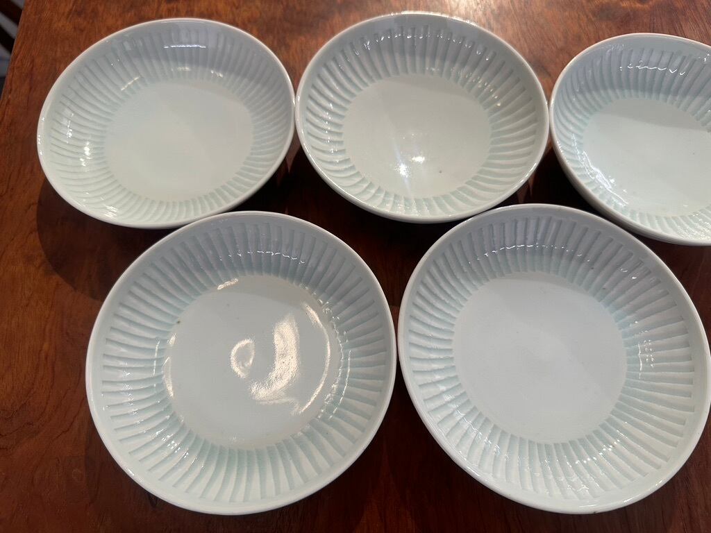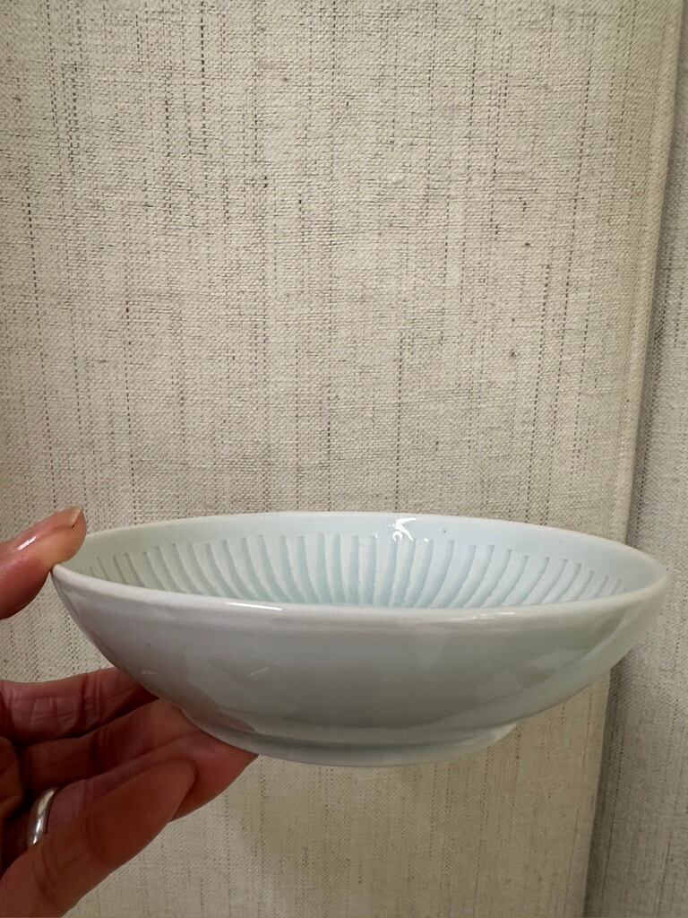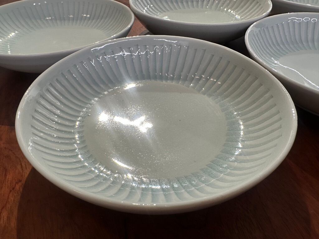 日々の暮らしの傍に彩りをもたらし親しく寄り添う器であることを思って作られていらっしゃいます。磁器土は盛り付けたお料理の色、匂いの染み込みを気にすることなく普段使いにどうぞお使いください。なます皿は見込みが平らになっている浅い鉢です。しのいだところに釉薬が溜まった様子が綺麗です。