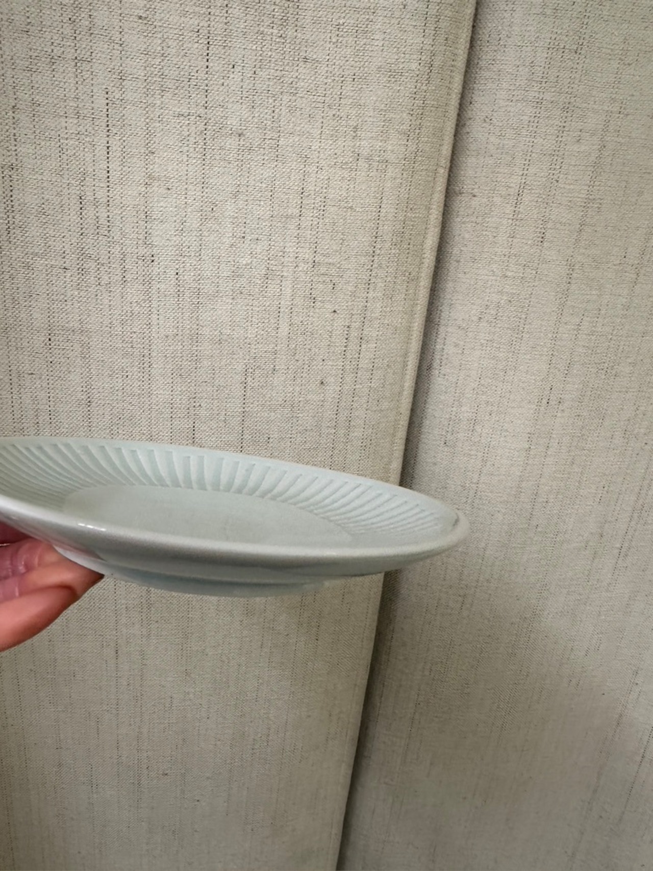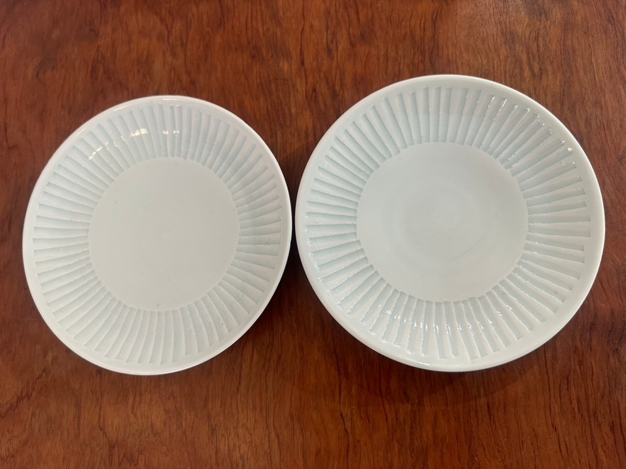 少し青みがかった磁器皿 取り皿より少しだけ大きな5,5寸サイズになります