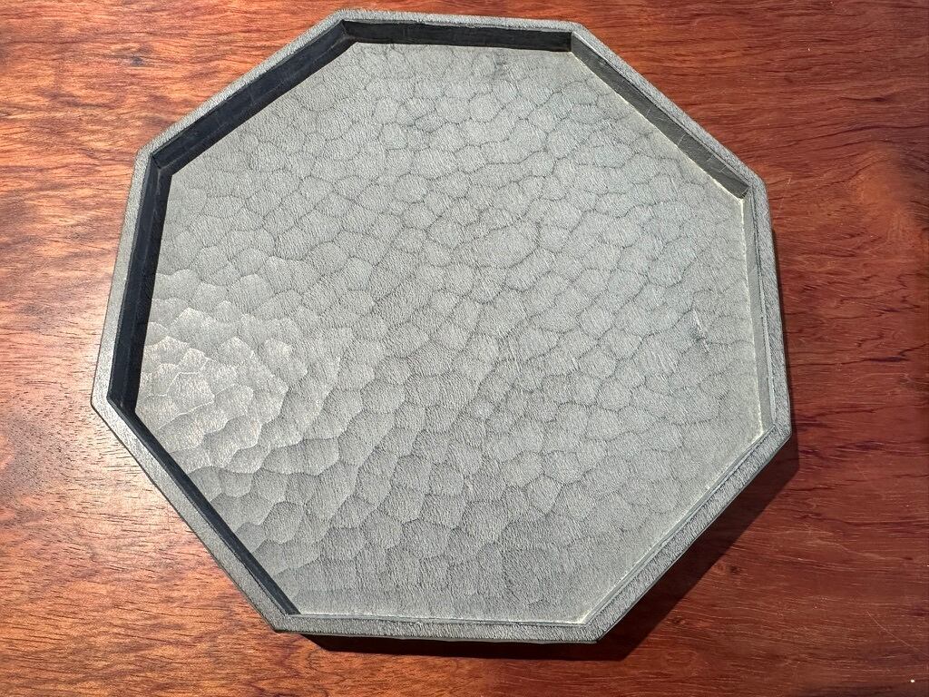 見込みは、彫りの凹凸があることで、うつわを置いた時に安定感もあり、又多少の傷も目立ちません。日常使いのお盆に気軽に使えて活躍すると思います