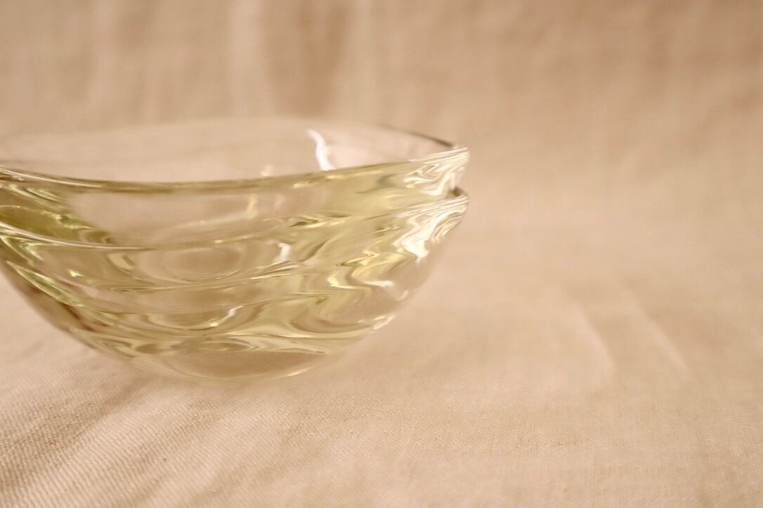 神奈川県に工房を持って制作されている松岡さんは、ほんのり琥珀色にしたガラスを吹いてうつわや花器を作られています