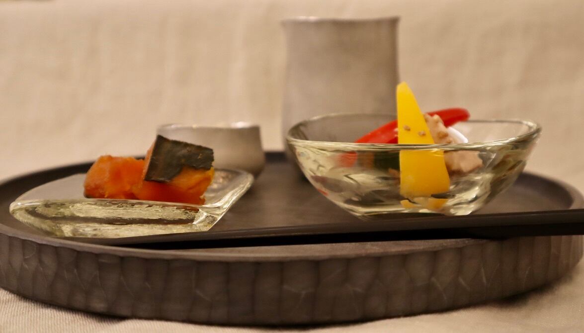 松岡さんの特徴でもある、ぽってりと厚みのある豆鉢は琥珀色を一層際立たせています。