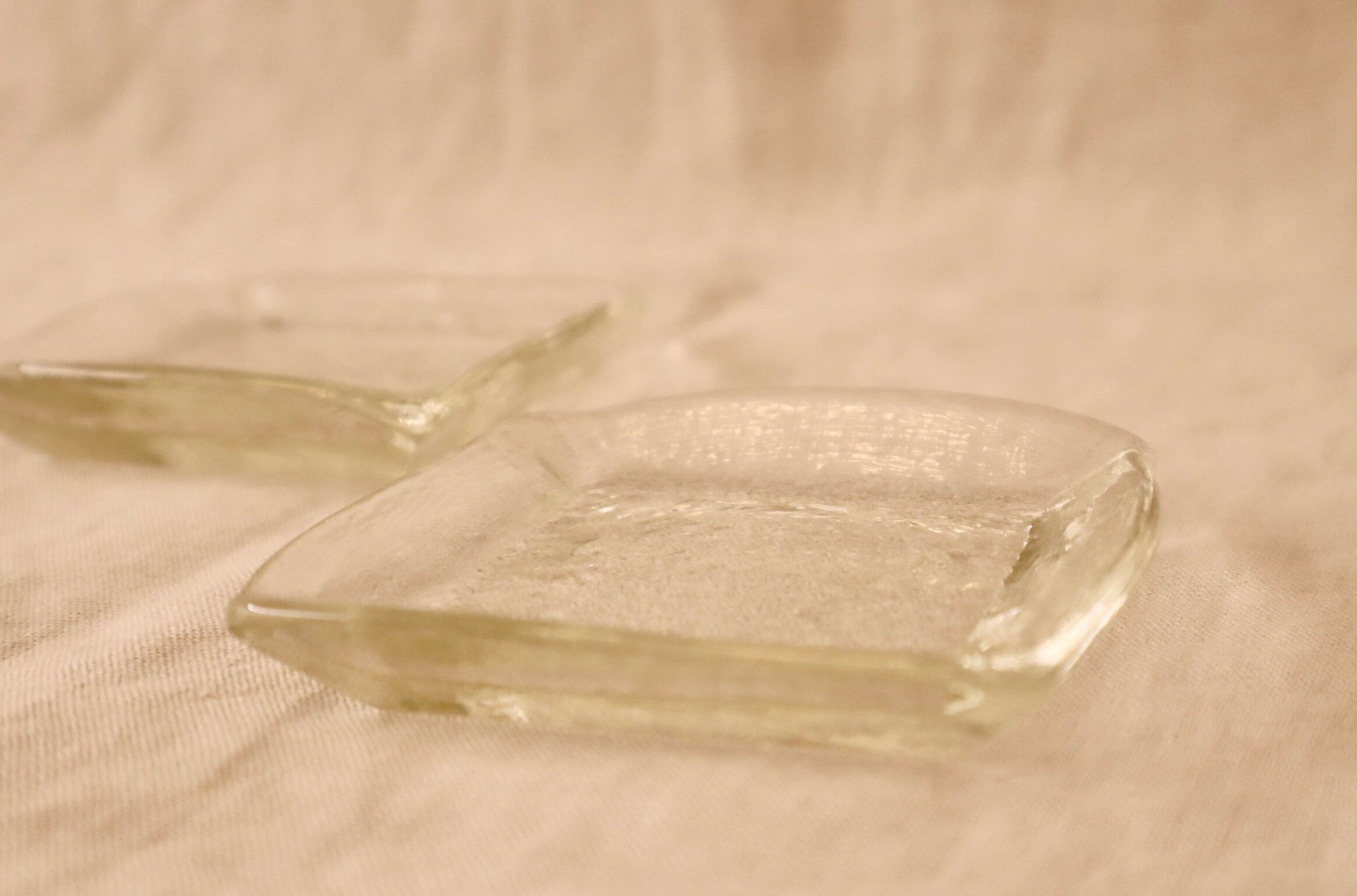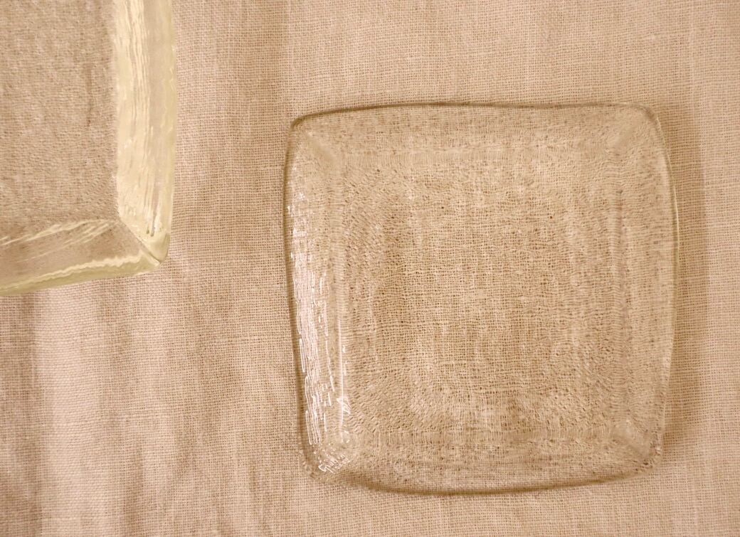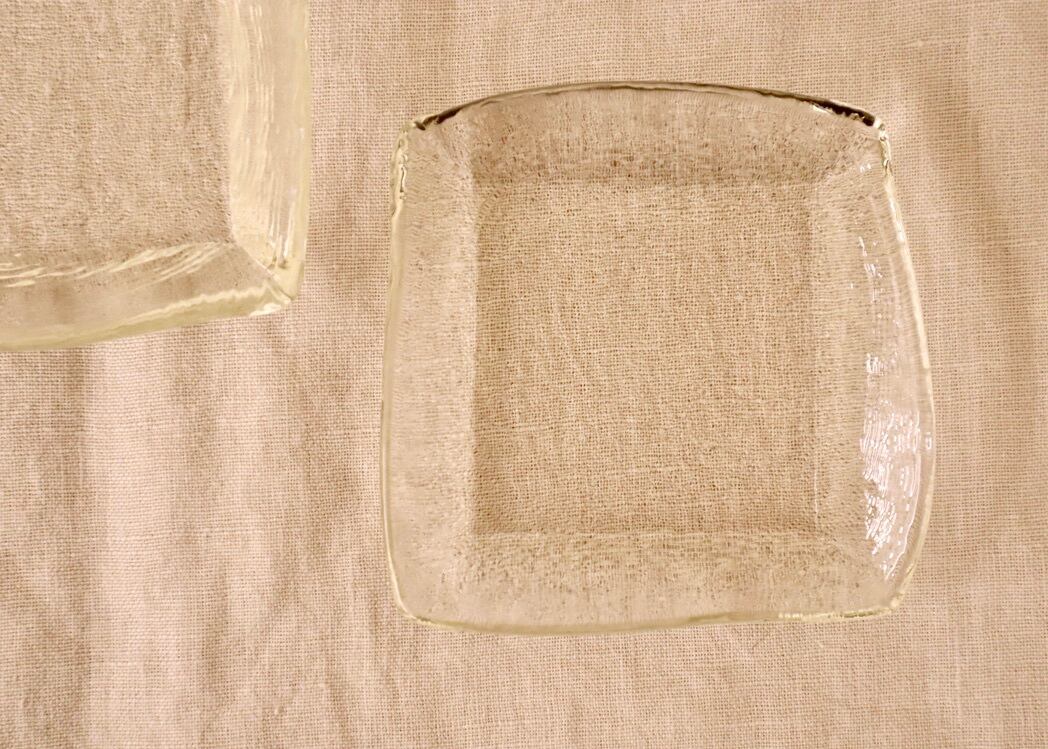 型に面した底が、みなものようにゆらめく表情に仕上がることから「みなも角皿」と名付けられました。小さな角皿はスタッキングも出来て収納もしやすいお皿です。