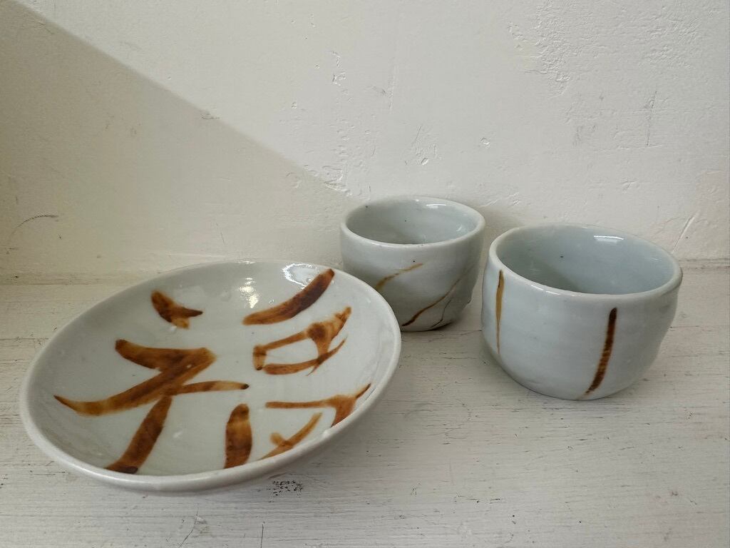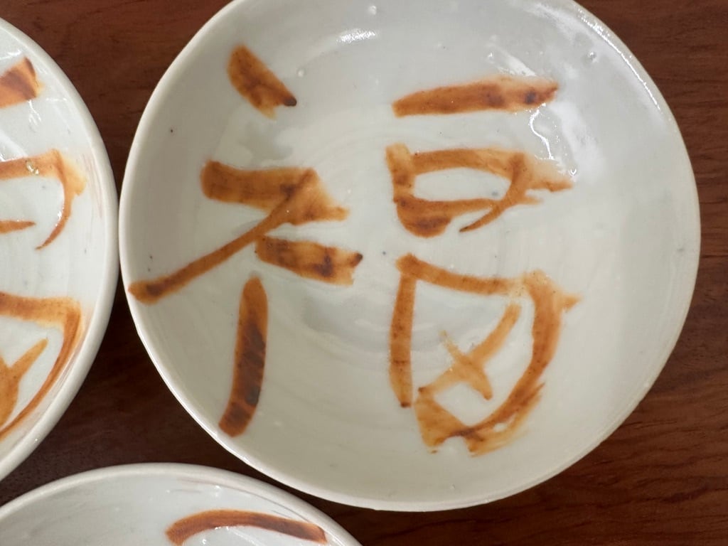 お皿いっぱいにさび色で描かれた「福」の文字は勢いがあって、いかにも福を呼び込んでくれそうな気がしてきます。細かな石粒が混ざってた磁器土で作られている表情も味わいがあります